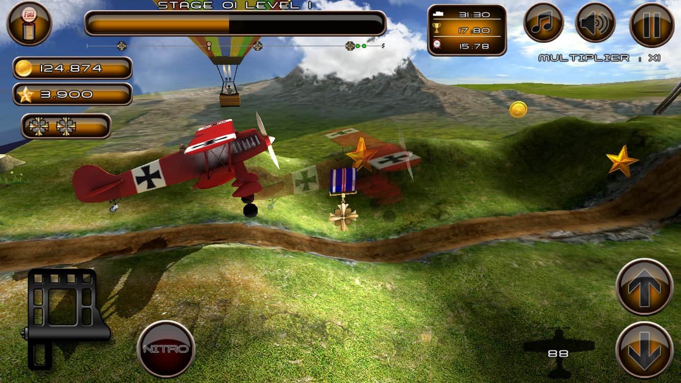 Hill Climb Fly Racing – un juego de vuelo en 3D con vista lateral, que recuerda mucho a sus colegas del sector, solo que antes eran coches, y ahora es aviación ligera. Llega a la meta lo más rápido posible, recoge oro y estrellas y trata de no chocar con nada. En el juego se ofrecen seis aviones diferentes para elegir. Después de cada vuelo, puedes actualizar tu avión para tener más posibilidades de ganar. Características: