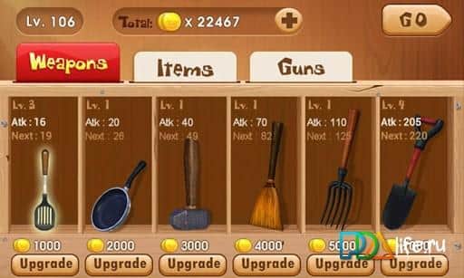 Golpea a la Bestia - en este juego de arcade estás en una ubicación rural y constantemente te preocupan los animales salvajes del bosque cercano, que vuelven a ti para comer algo sabroso de tu jardín e incluso de la casa. Y todo, cualquier cosa, pero solo que las invasiones son tan frecuentes y grandes que de tu cosecha solo quedan migajas. ¡Esto es inaceptable, y declaras la guerra a los secuestradores - el curso es todo material improvisado, desde palas y rastrillos, e incluso una sartén será una gran arma!