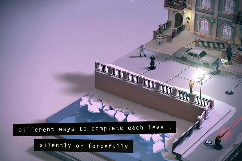 Hitman GO es un juego hecho en el estilo de un juego de estrategia por turnos con niveles panorámicos hermosos. Tendrás que navegar a través de un mapa en cuadrícula utilizando estrategia y táctica, evitando enemigos o destruyéndolos. Tienes la opción de llegar al lugar designado sin hacer ruido, ser una sombra de los enemigos, y te ayudará con esto un Arsenal no tan débil: camuflaje, cebos, rifles de francotirador, o puedes revelarte en el primer minuto y destruir todo en mil pedazos. También en el Arsenal ha estado durante mucho tiempo el arma clásica del Agente 47 - The Silverballer.