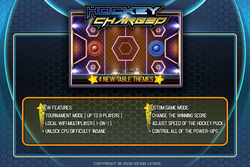 El hockey de aire es un juego móvil bastante popular para dos personas. Para el juego se requiere una mesa, dos palas y un disco, usando la pala debes intentar anotar el puck en la portería del oponente. Debido a la simplicidad y dinamismo del juego, ha ganado una popularidad envidiable en las reuniones. Por su parte, la versión original de mesa funciona de manera bastante armoniosa tanto en plataformas móviles como en la versión digital, que ha adquirido una serie de características no disponibles para las mesas. Charged Hockey - hockey de aire para dispositivos Android, con gráficos estilizados y animación vívida. Además, los desarrolladores han implementado un conjunto de diversas variantes, incluyendo batallas multijugador y en línea.