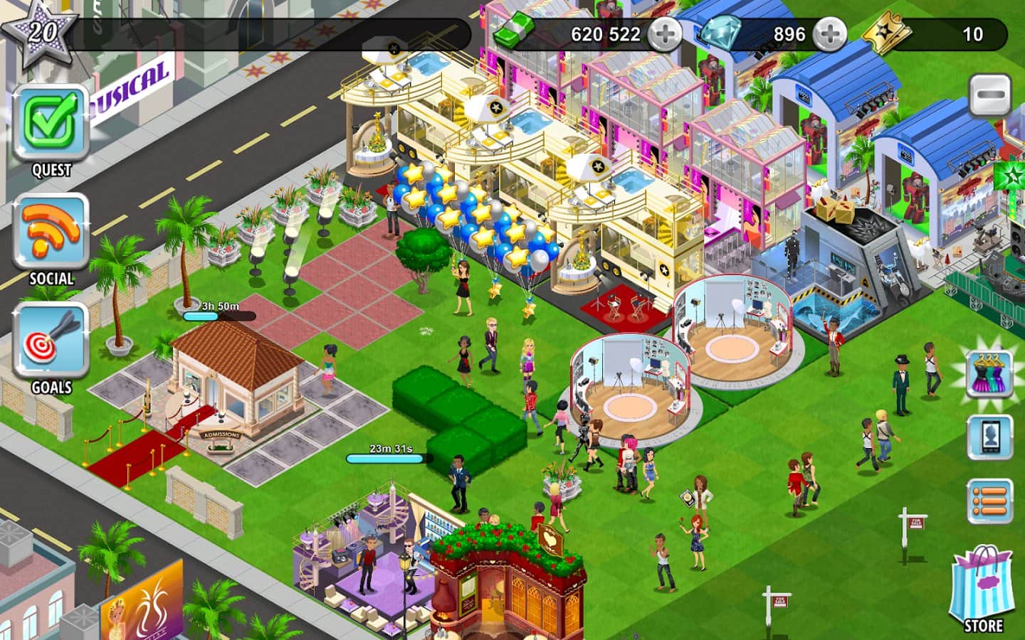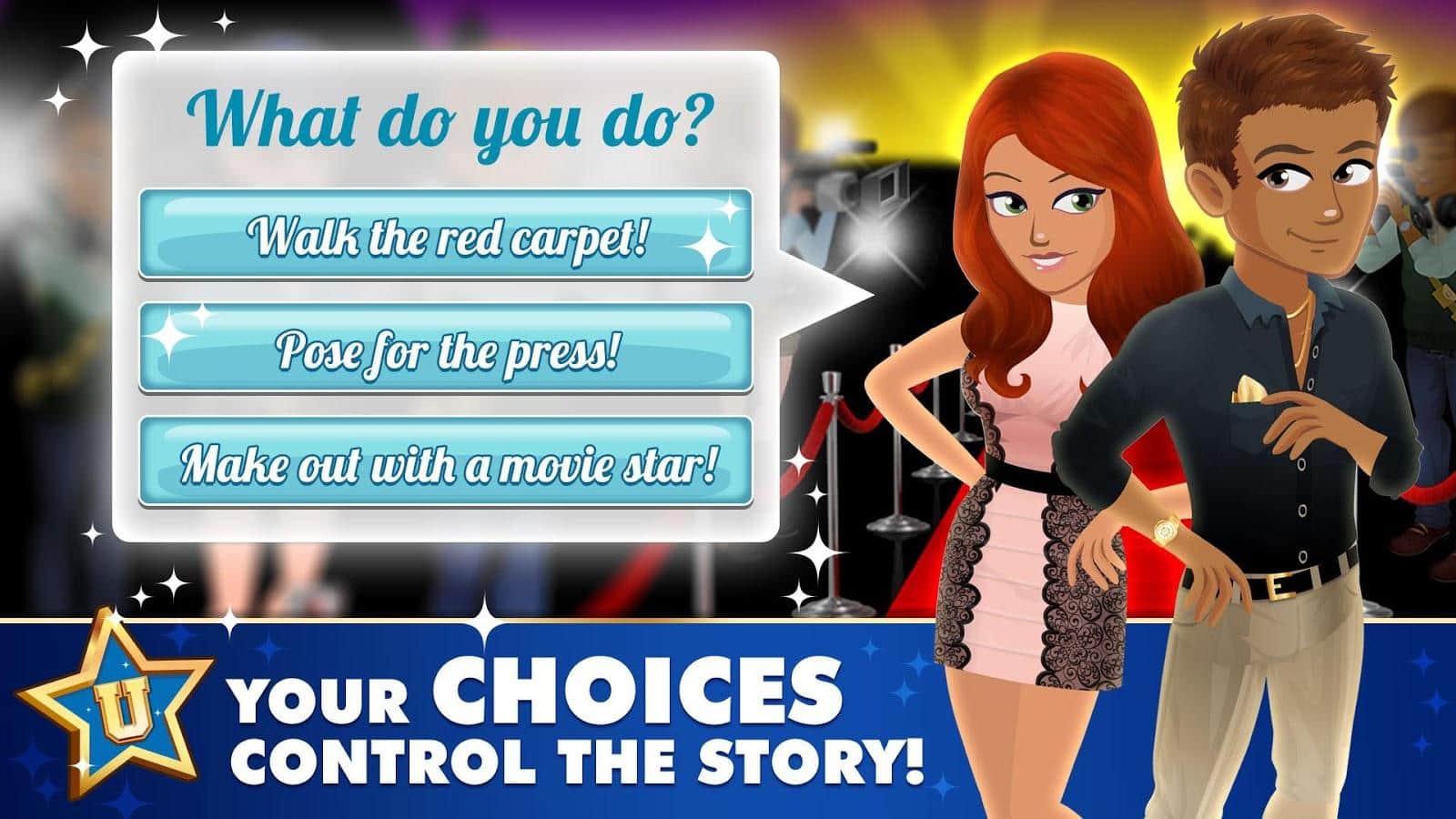Hollywood U: Estrellas en Ascenso - Embárcate en un fascinante viaje a través de Hollywood. No todos pueden estudiar en la escuela de estrellas en Hollywood, pero tú tienes suerte y vas allí. ¿Qué quieres ser? y ve por la gloria. Asiste a todos los estrenos, camina por la alfombra roja, elige tu entorno y mucho más. Juega a encarnar un personaje, ve todo el camino hacia la gloria. Encontrarás muchas historias interesantes, citas con celebridades, la oportunidad de visitar lugares interesantes, probar numerosos y elegantes atuendos para la publicación y otras aventuras.