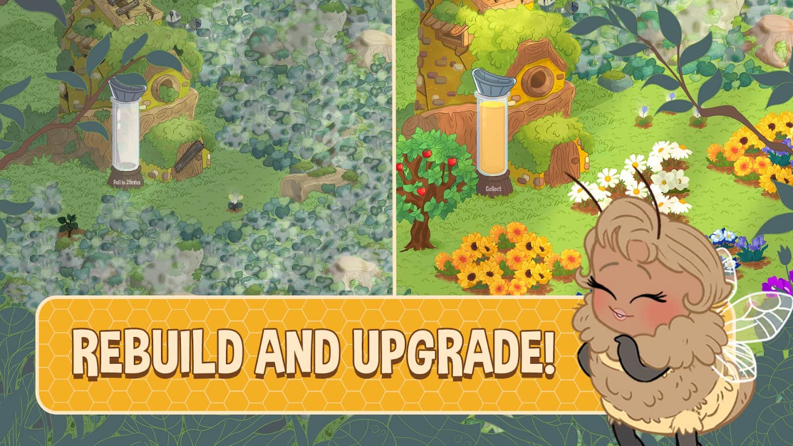 "Honey Grove" es un desarrollo interesante en el género de la agricultura que ha aparecido ante nuestros ojos. Ahora cuidamos no solo de la granja, sino también de sus habitantes: encantadoras pequeñas abejas que aman mucho las flores. Los jugadores pueden crear su propio jardín perfecto, regando, recolectando o despejando flores del crecimiento descontrolado. Gradualmente, todas las flores se agregarán a tu colección. El juego también tiene una historia presentada en forma de cómics. Además, el juego cuenta con gráficos muy agradables y tiernos que ayudan a sumergirse completamente en el mundo de estas adorables pequeñas abejas.