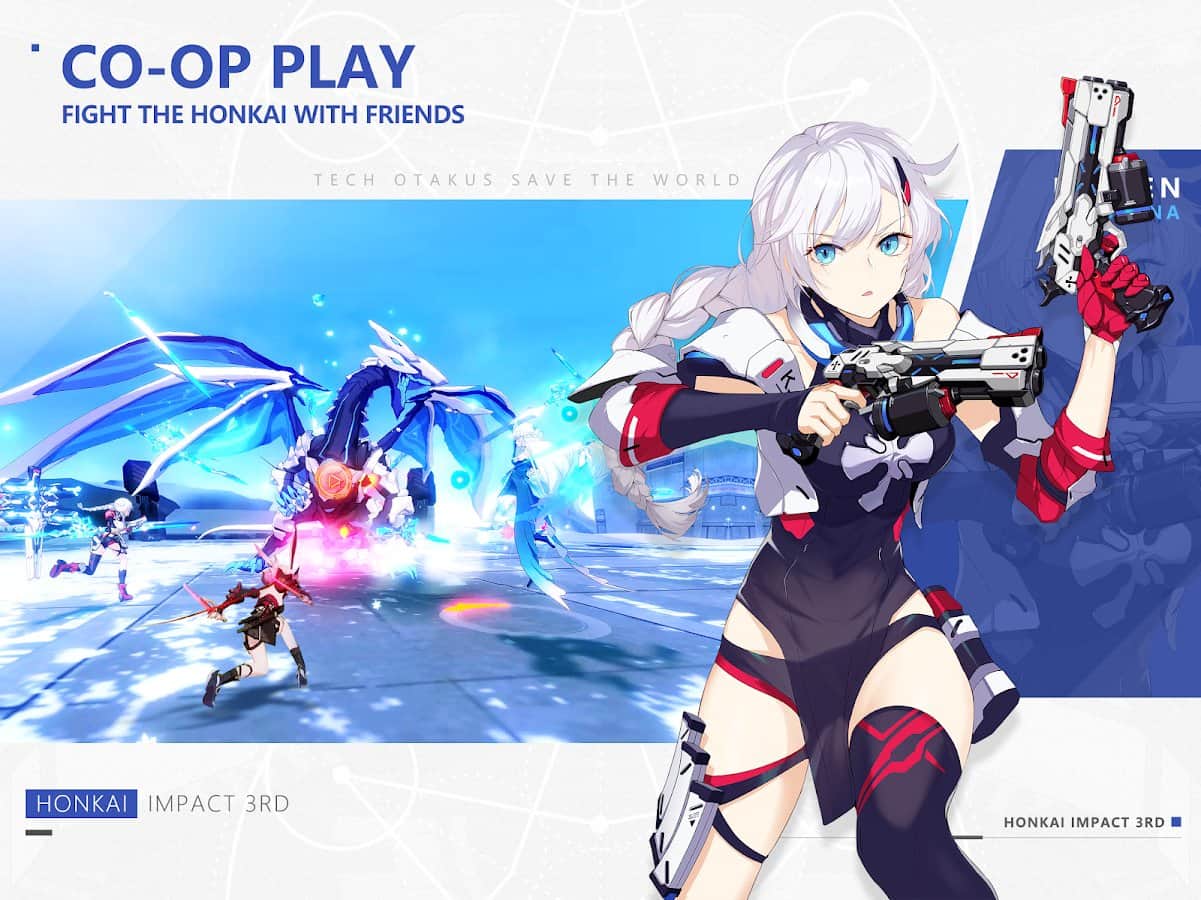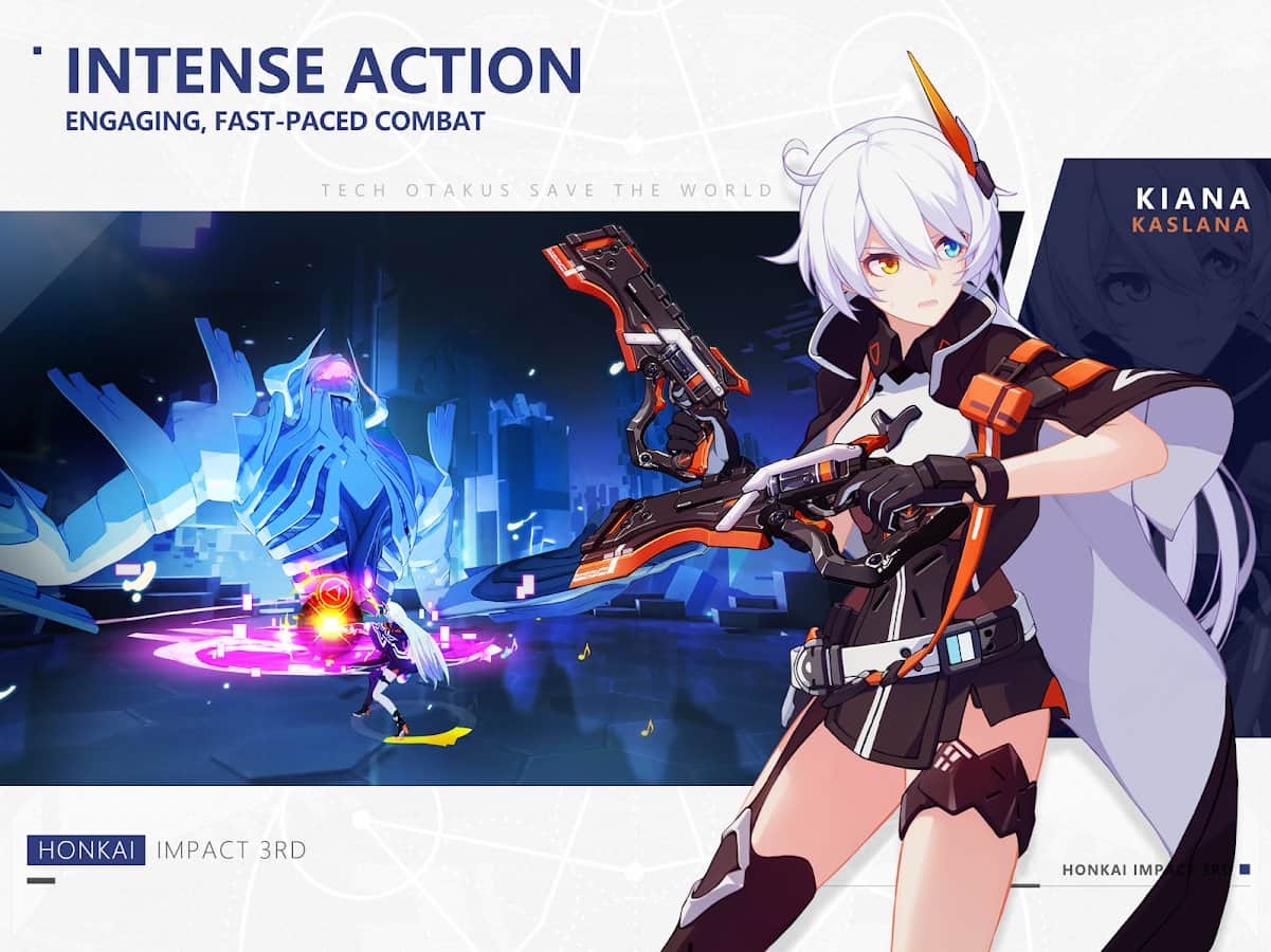 Honkai Impact 3rd – un juego increíble que combina acción y rompecabezas, está lleno de criaturas míticas y giros intrigantes en la trama. Controla al personaje, una mañana ella llamó y dijo que su amado estaba en peligro. Acompáñala en peligrosas aventuras para salvar al ser querido. Investiga varios crímenes y sumérgete en un mundo de intriga y misterio, completa misiones y tareas y obtén recompensas. Utiliza los premios y bonificaciones agradables, presta atención a las partes circundantes, a menudo son presagios de eventos.