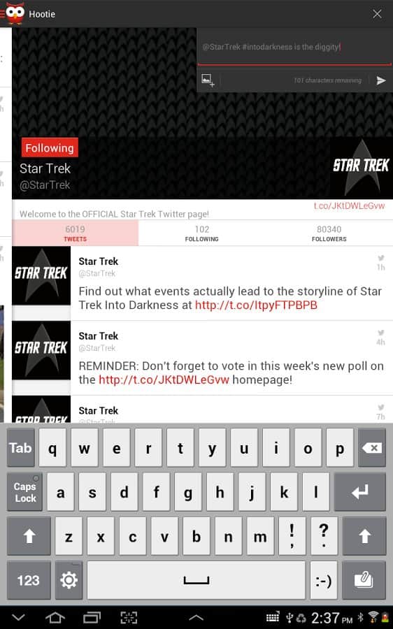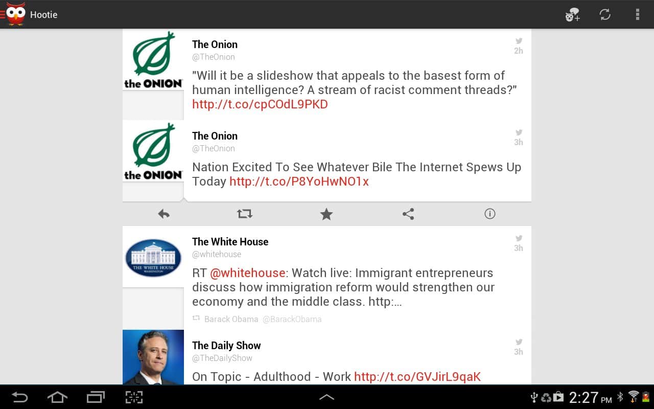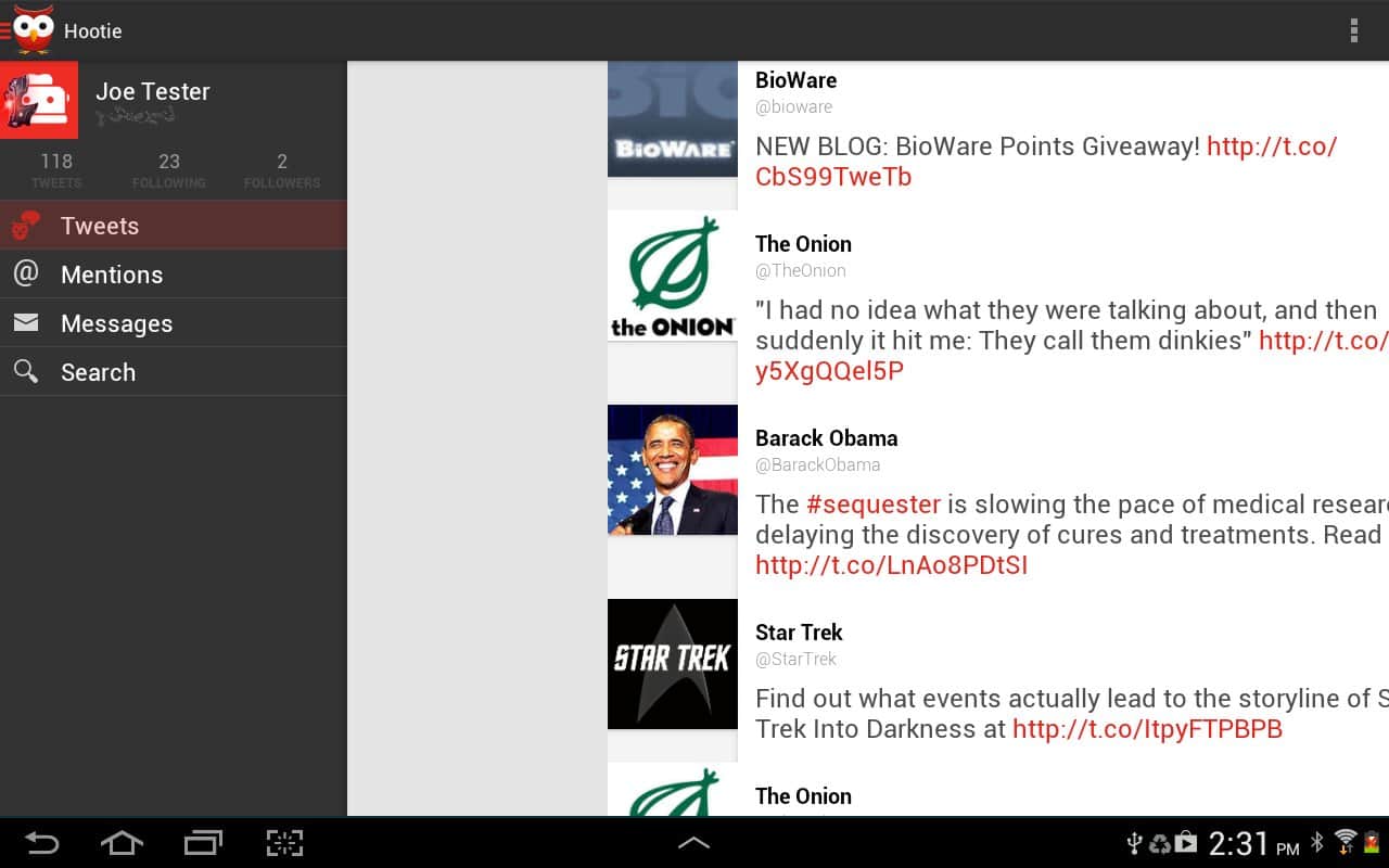 Hootie es un nuevo cliente de Twitter que te permite acceder a Twitter en tu dispositivo Android. el Cliente puede diferir en una cinta de desplazamiento suave animación única y navegación fácil.