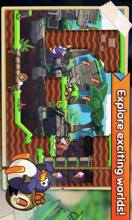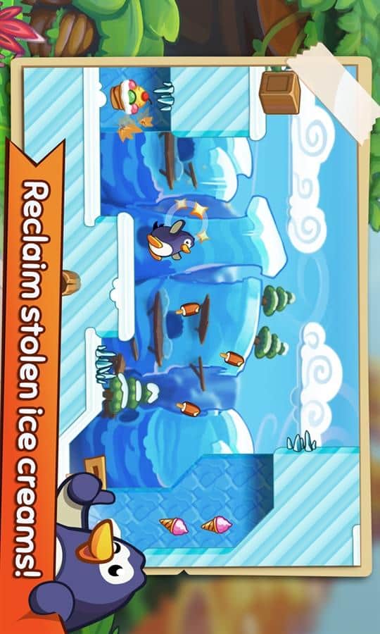 Hopping Penguin es un alegre juego de plataformas en el que ayudas al pingüino a recolectar delicioso helado. Todo el helado del pingüino fue robado y ahora debe seguir su camino para encontrar al ladrón y recuperar todo el helado. En este juego encontrarás una gran variedad de mundos que van desde la helada Antártida hasta la jungla sofocante. Control de un solo toque fácil, una gran cantidad de enemigos y varios bonificaciones alegrarán a los fanáticos de los juegos de este género.