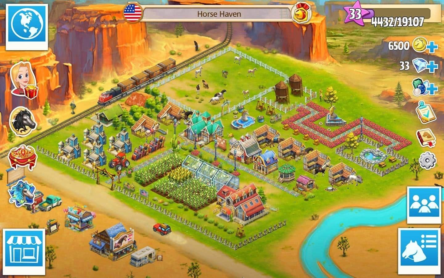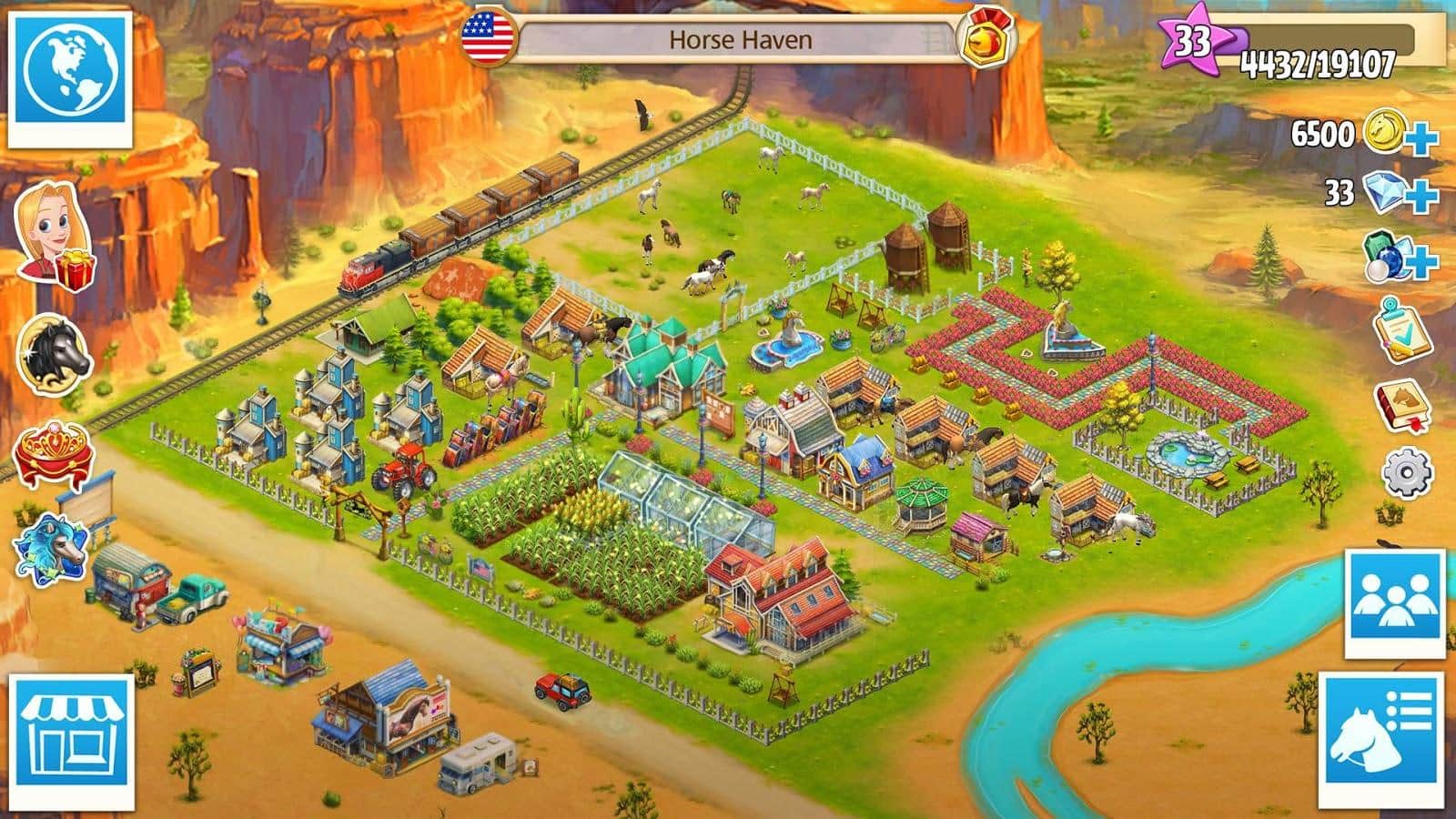 Horse Haven World Adventures - Este juego te ayudará a crear un paraíso para caballos en cualquier parte del mundo. Administra la granja de caballos perfecta y cría a tu amigo de cuatro patas ideal, con el que podrás participar en carreras de obstáculos y otras actividades. Crea una granja de escala mundial: un rancho en EE. UU., un establo en Francia... ¡Hazte famoso en todo el mundo! Para ello, cría, colecciona, vende y entrena a más de 90 caballos. Mima a tus animales, aliméntalos, límpialos y cría a los futuros campeones. Y junto a los campeones, participa en carreras en decorados maravillosamente exóticos. Cultiva la comida para tus mascotas directamente en la granja, para ello construye y mejora tus establos y trituradoras de forraje, para convertir tu establo en un paraíso para caballos. No olvides decorar tu granja con encantadores elementos decorativos para alegrar a tus protegidos. ¡Encuentra a otros amantes de los caballos y compite con ellos para averiguar quién es el mejor!