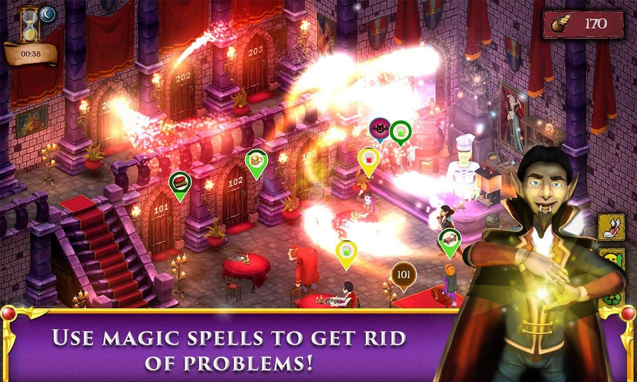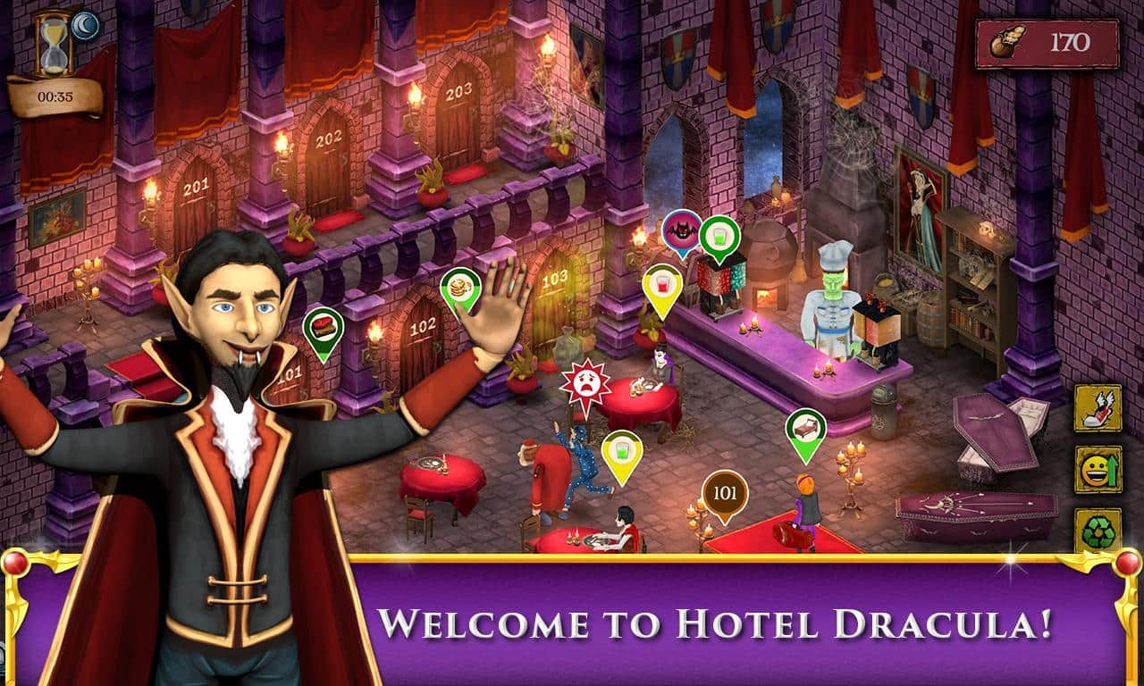 Hotel Drácula – un fascinante juego en Android, donde visitarás el hotel Drácula. En este juego jugarás el papel del personal, sobre cuyos hombros recae una gran responsabilidad por el diseño y alojamiento de los visitantes en las habitaciones, por lo que necesitarás limpiar las habitaciones y poner las cosas en orden. Toma pedidos y entrega comida a los huéspedes que visitan, deshazte de la basura y da órdenes. También en este juego podrás utilizar hechizos mágicos que te ayudarán en la hora pico a mantener la situación bajo control. Completa emocionantes misiones y resuelve difíciles tareas, juega mini-juegos y logra grandes resultados en este juego.