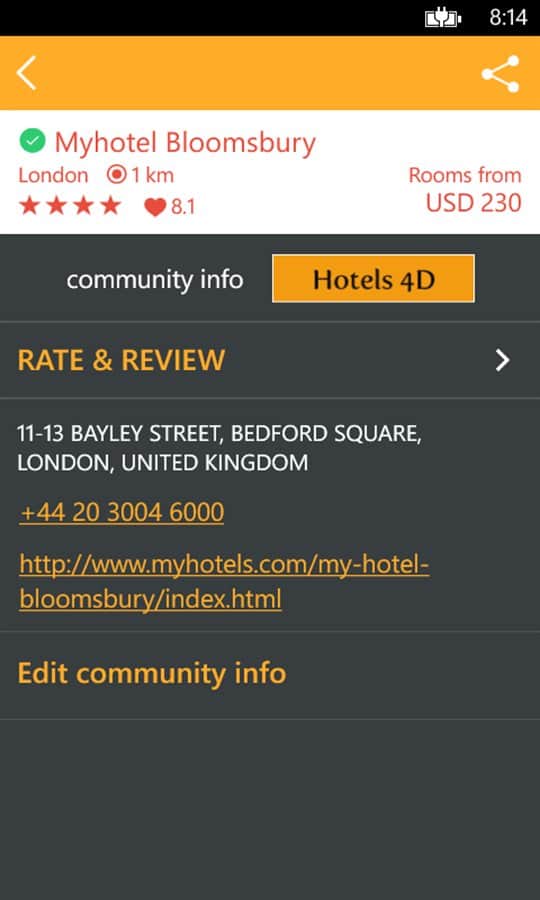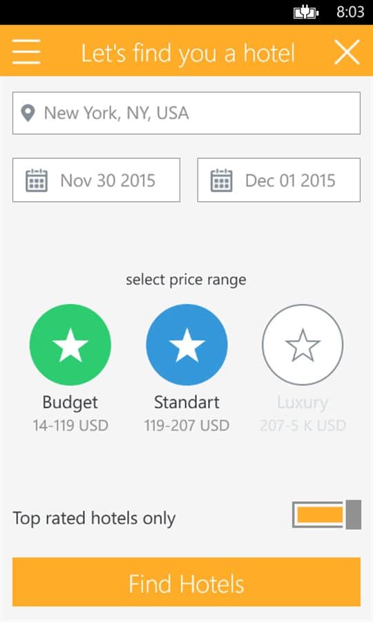 Buscador de Hoteles - programa en Windows Phone que ayudará a encontrar el hotel en una ciudad desconocida. Puedes especificar los criterios de búsqueda deseados y obtendrás el hotel que deseas. El programa es perfecto para turistas, viajeros de negocios y otras personas que viajan con frecuencia.