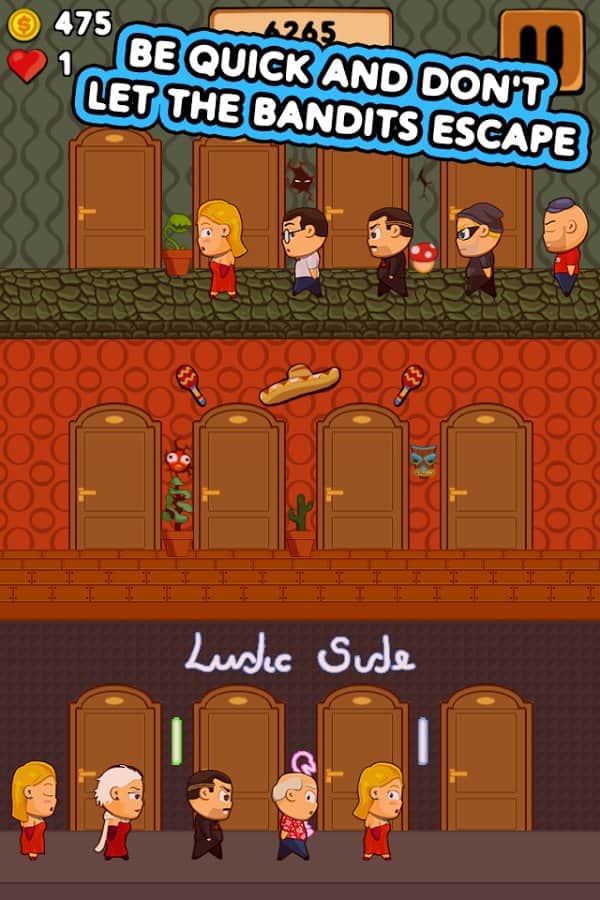 Hotel Panic - «Hotel Pánico» - es un juego de destreza. Sé muy rápido y no dejes que los bandidos escapen. Tu objetivo principal en este juego es la seguridad de los huéspedes del hotel y arrestar a tantos bandidos como sea posible. Pero debes tener mucho cuidado de no arrestar accidentalmente a los huéspedes del hotel por error. Te esperan actualizaciones para mejorar el rendimiento, impresionantes gráficos del juego, una banda sonora magníficamente seleccionada y mucho más. ¡No te pierdas este emocionante juego que no te dejará aburrido desde el principio hasta el final de tu aventura!