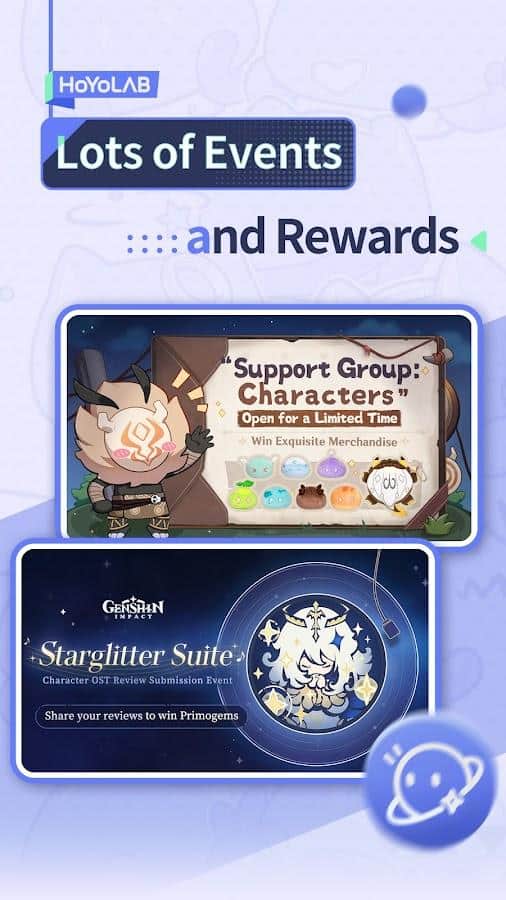 HoYoLAB - ¡Únete a la comunidad en línea creada especialmente para los fans del juego Genshin Impact! Aquí puedes chatear con otros jugadores, compartir tus logros en el juego y obtener las últimas noticias y actualizaciones del juego. HoYoLAB ofrece una oportunidad única para interactuar con los desarrolladores del juego e incluso influir en futuras actualizaciones y adiciones. En la comunidad encontrarás muchos recursos útiles, como guías, consejos y tutoriales para completar el juego. Este es el lugar donde puedes encontrar personas afines, obtener respuestas a tus preguntas y adentrarte en un nuevo mundo junto con otros jugadores.