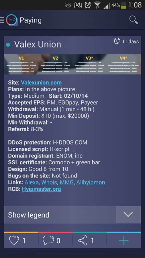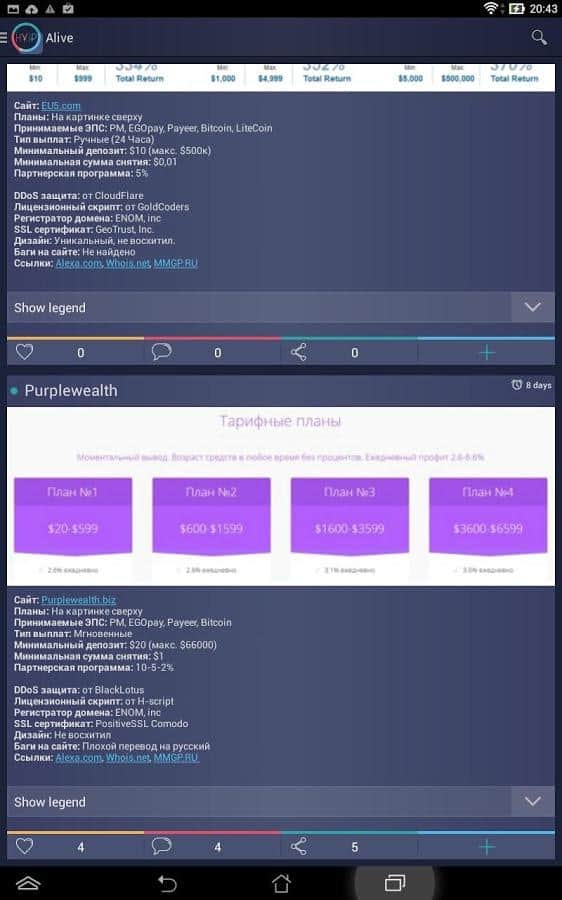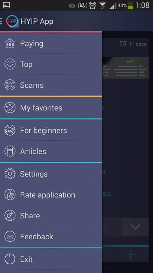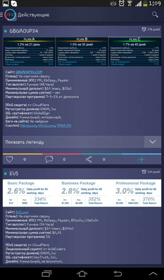 Comentarios a HYIP App en Android