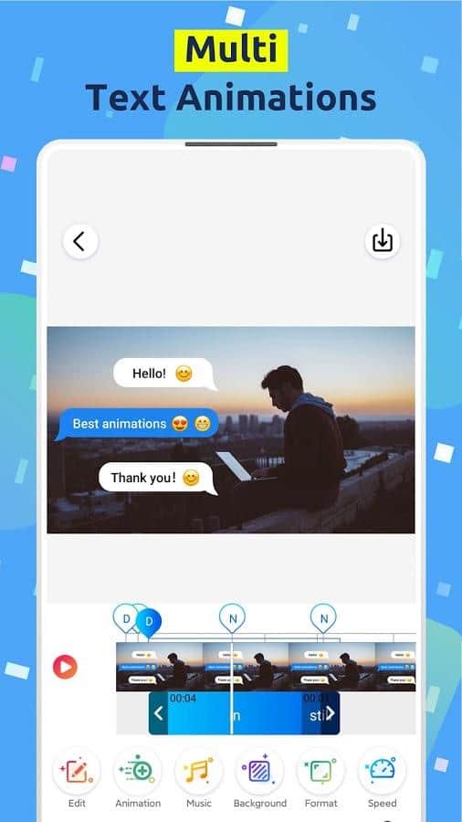 Hype Text - Creador de Texto Animado e Intro - Convierte fotos ordinarias en tomas creativas que transmiten perfectamente la atmósfera y el estado de ánimo. Elige la imagen necesaria y comienza a transformarla: agrega cualquier texto con asombrosas animaciones, colores y otros efectos. ¡Prueba esta útil función incluso al editar material de video! Elige el estilo de texto apropiado para cada video o foto y personaliza la animación como desees. Agrega música y ajusta la velocidad para destacar entre los demás.