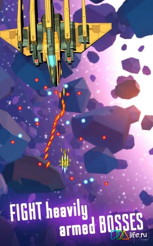 Probablemente, el tirador en desplazamiento más popular y conocido es un tirador de aviones llamado Sky Force. Sin embargo, en plataformas móviles también hay instancias no menos dignas como Hyper Force - Space Shooting. Hyper Force - Space Shooting es un tirador en desplazamiento vertical en un entorno exterior. Como en la mayoría de los juegos similares, la trama es bastante superficial, solo se sabe que una inteligencia superior está tratando de esclavizar a la raza humana y ahora solo tú puedes salvar el planeta destruyendo todas las unidades de combate enemigas, y luego golpeando y descalzo. El proceso del juego se realiza según el esquema clásico: volar, disparar, destruir, recoger premios. Y por tus logros podrás comprar una nueva nave o mejorar las existentes. Excelentes gráficos y animación colorida harán que la jugabilidad sea aún más adictiva.