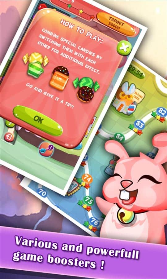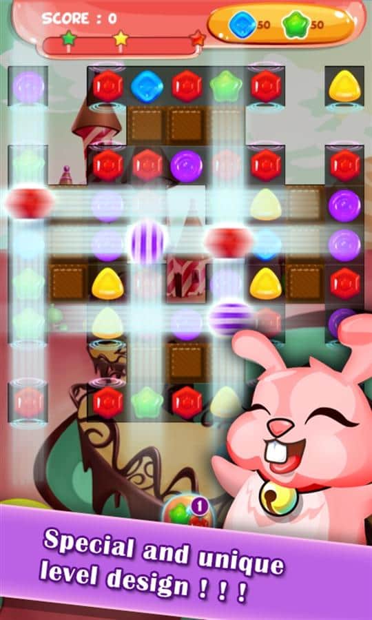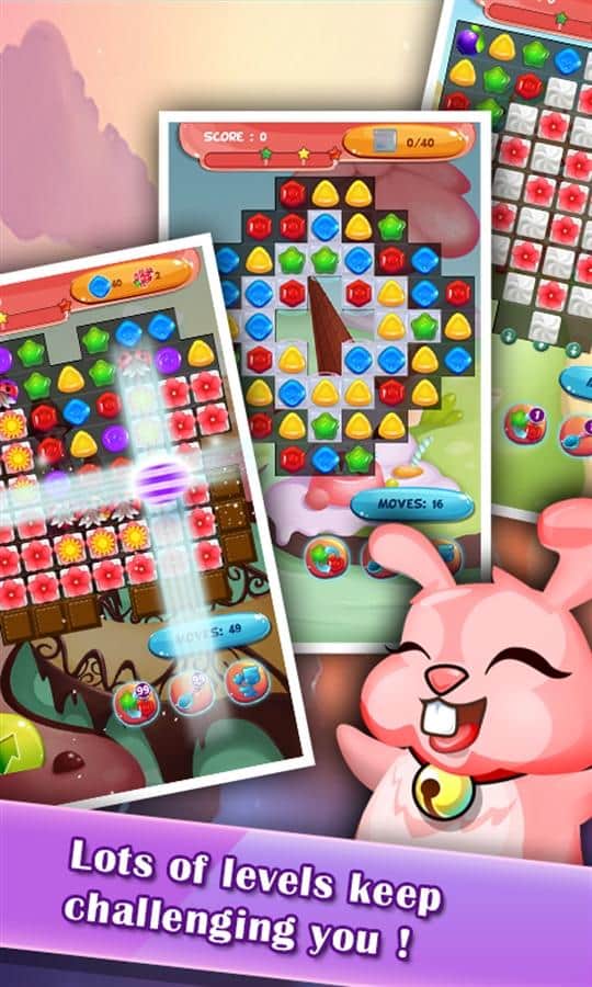 I Hate Candy – un juego de rompecabezas del género tres en raya para Windows Phone. En este juego, te embarcarás en un viaje al país de los dulces y tendrás que alinear tres o más bloques en fila para obtener bonificaciones en forma de deliciosos donuts y caramelos para tu conejito. El juego te atraerá con su brillante gráfica y una gran cantidad de niveles variados. Hay más de 60 niveles dulces en el juego y 3 coloridos escenarios. Completa los niveles uno tras otro y aplica diversas bonificaciones y amuletos para desbloquear niveles difíciles y completar el juego hasta el final. Al principio, el juego te parecerá muy fácil, pero con cada nuevo nivel, la dificultad aumentará y tendrás que hacer un gran esfuerzo para completarlo.