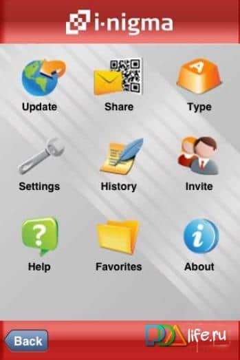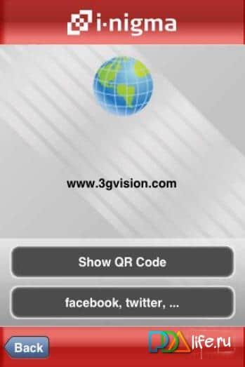 i-Nigma - aplicación para el reconocimiento de códigos QR para Windows Mobile. Tiene la capacidad de escanear una imagen previamente guardada en la cámara. Con una interfaz elegante e intuitiva, con el programa compartido