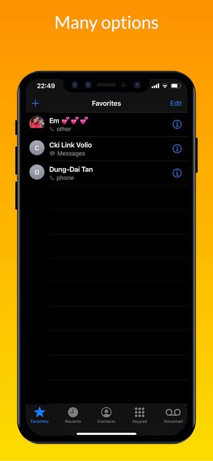 iCall iOS 15 – Llamada del iPhone 13 - si eres un verdadero fanático de la interfaz y funcionalidad de los iPhones, pero no tienes la oportunidad de comprar este teléfono, entonces en este caso se han inventado análogos de aplicaciones o programas para propietarios de Android. Al instalar esta útil aplicación, verás por ti mismo cuán funcional puede ser el registro de llamadas. Usando los botones ubicados uniformemente en la pantalla, puedes marcar rápidamente cualquier número y hacer una llamada, o rechazar una llamada no deseada y luego bloquear al usuario. Todas las funciones son completamente idénticas a la interfaz de iOS 15.