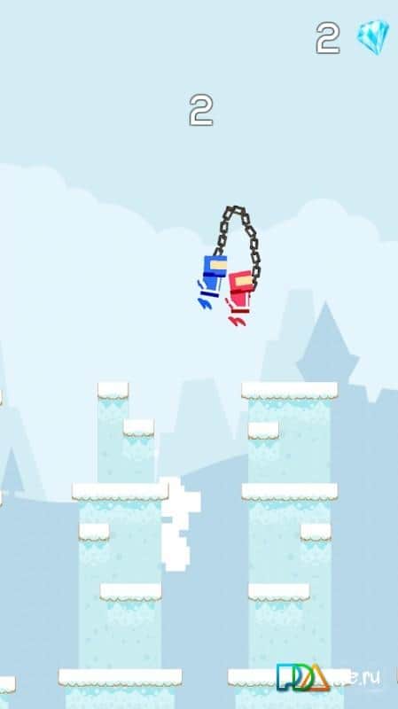 Icy Ninja – un divertido juego para Android donde moverás a los dos ninjas en las cumbres cubiertas de nieve. Dos ninjas conectados por una cadena saltan en las plataformas mientras intentan maximizar la distancia recorrida. Verifica tus excelentes reacciones y reflejos, toca la pantalla de tu teléfono en el momento adecuado para ver a los personajes saltar alternativamente y caer en el abismo. Cuenta con precisión cada salto del héroe, y si un personaje resbala y cae al fondo, arrastrará también al otro. Juega a este juego y compite con tus amigos por los mejores resultados. Desbloquea nuevos héroes en el juego y disfruta de una excelente física.
