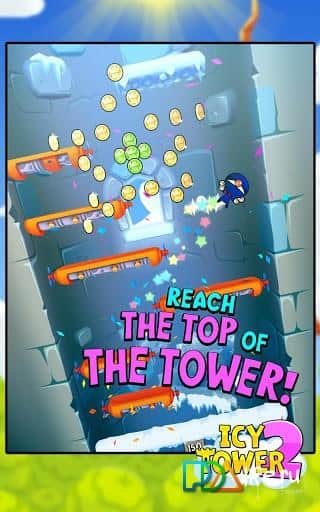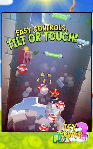Icy Tower 2 - continuación del famoso saltador para Android. Salta sobre las plataformas, recoge monedas y lo más importante no caigas, para volar hacia abajo demasiado, y caer mal. En el juego hay diferentes bonificaciones en forma de objetos de alivio para que el jugador flote en el paraguas, corra por las paredes, en general atrapa la ola.
