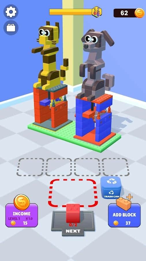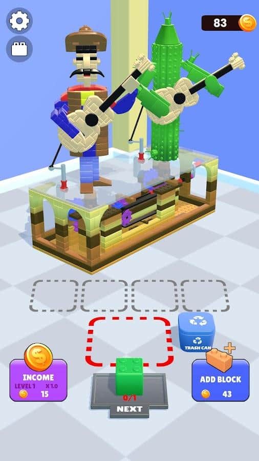 Master de Bloques Ociosos - ¿Estás interesado en la oportunidad de crear figuras divertidas a partir de bloques, construir obras maestras arquitectónicas o dar vida a tus fantasías más audaces? Nuestro juego es exactamente lo que necesitas. No son solo cubos, es una oportunidad para desatar tu artista e ingeniero interior. Aquí, todos pueden impresionar con sus ideas únicas y darles vida. Puedes esperar un juego interesante y cautivador que te mantendrá entretenido durante horas. Actualizamos regularmente los niveles, añadiendo nuevas tareas y desafíos para mantener tu interés y motivación. Te sorprenderá lo rápido que pasa el tiempo cuando estás inmerso en el mundo de nuestros bloques.