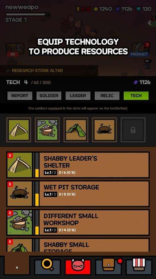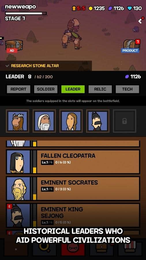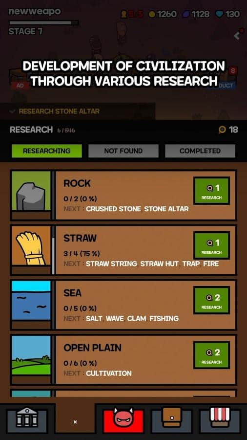 CIVILIZACIÓN INACTIVA - el mundo está destruido por un virus zombi, solo queda un puñado de personas que no saben qué hacer. Así que decidieron que podrían construir una civilización sobre las ruinas de sus ancestros y antepasados. ¡Y nosotros los ayudaremos en este asunto! Explora manuscritos de años pasados para lograr nuevas invenciones, y también entrena y despliega a tus soldados para proteger a los habitantes más inteligentes (cada batalla con el enemigo será automática). Con cada investigación, tu progreso aumentará y aumentará. También puedes dejar a los habitantes solos en la aldea e ir a hacer tus asuntos.