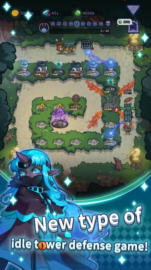 10+ tipos de torres con diferentes funciones: Flecha, Piedra Mágica, Veneno, etc.