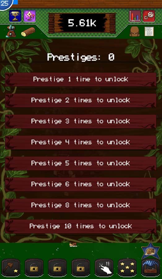 Idle 2 Evolution – juego clicker para Android donde conseguirás madera. En este juego te encontrarás en un mundo donde la madera es un recurso infinito. En el juego tu tarea principal será hacer clic en la pantalla de tu teléfono o tableta y obtener madera. Cuantos más recursos consigas, más oportunidades descubrirás. Recolecta varios objetos y bonificaciones y mejora tu árbol, desarrollándolo y pasando por varias etapas de evolución. Toma la ayuda de varios personajes que harán todo el trabajo por ti. Intenta desbloquear numerosas mejoras para aumentar tu progreso en el juego. El juego también te deleitará con niveles generados y una variedad de paisajes y vida animal.