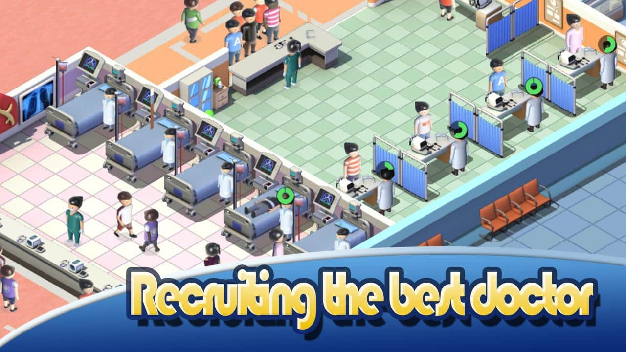 Idle Hospital Tycoon – un simulador para Android, donde gestionarás un enorme hospital. Toma el control del hospital y mejóralo, atrayendo así a más clientes y personal médico. Haz que tu hospital sea el más moderno y el mejor de la zona y obtén beneficios. Invita a tu hospital a médicos y personal más cualificados y crea nuevos medicamentos y desarrolla nuevos métodos para el tratamiento de pacientes. Facilita el trabajo de los médicos y expande el aparcamiento. Publicita tu hospital para atraer a más visitantes. Recluta gerentes que gestionen el hospital en tu ausencia.