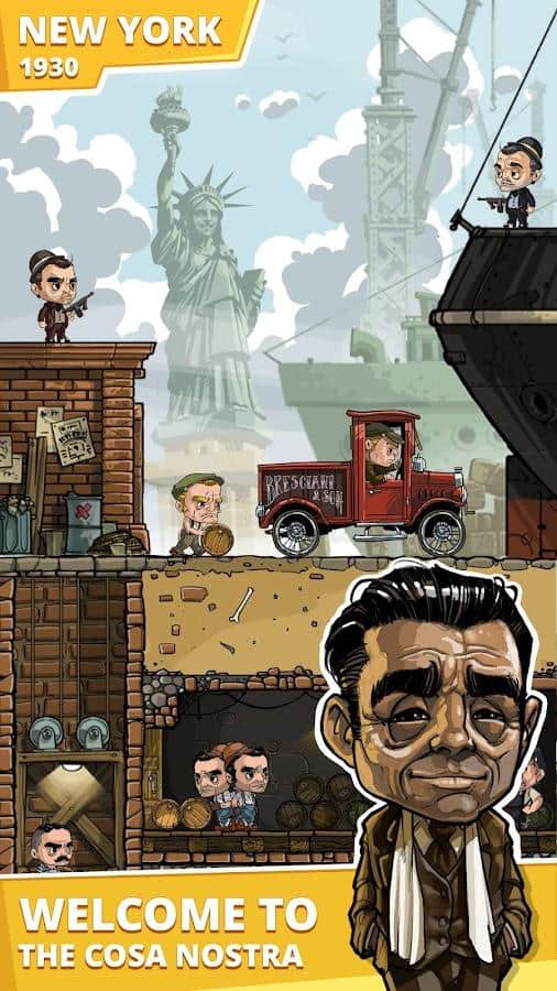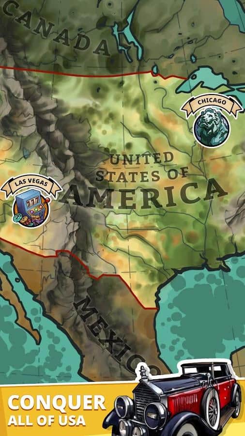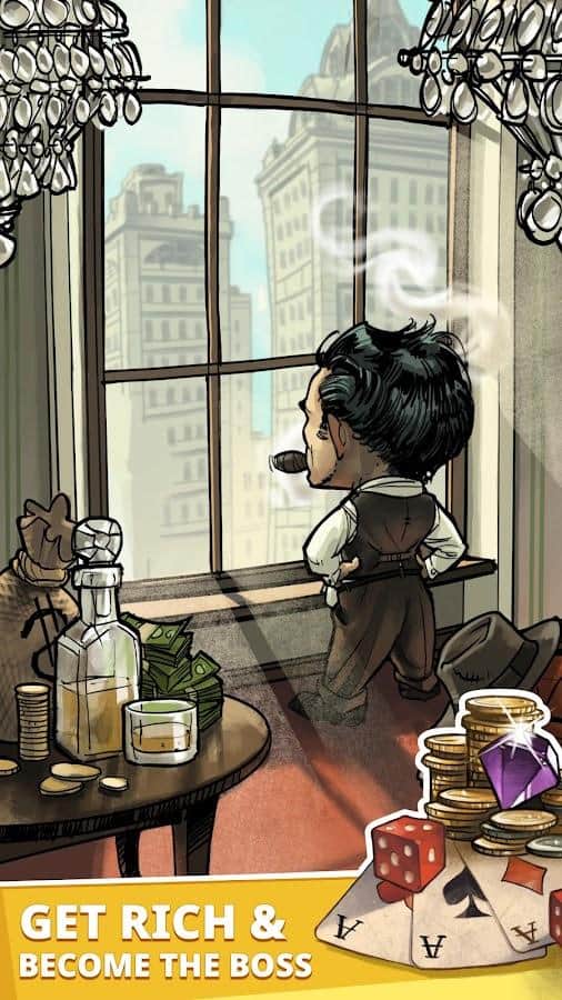 Idle Mafia Boss – es un simulador económico del jefe de la mafia. La acción tiene lugar en la ciudad de Nueva York, en tiempos de crisis, desempleo y prohibiciones. El jugador comienza su viaje siendo un perdedor ordinario, pero tiene como objetivo convertirse en el líder de una banda criminal, y más tarde en el de toda la ciudad. Al principio, cometes pequeños delitos para ahorrar un poco de dinero, luego luchadores y gerentes crean nuevos empleos. Tu objetivo inicial es capturar la zona de todos los establecimientos que generan ingresos. Gradualmente expande tu zona de influencia por toda la ciudad. El juego tiene gráficos muy agradables y mecánicas simples y directas. Organizando correctamente tu negocio, puedes ganar ingresos incluso cuando no estás en el juego.