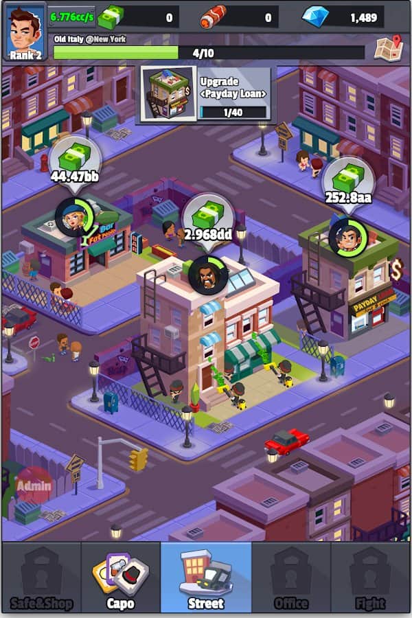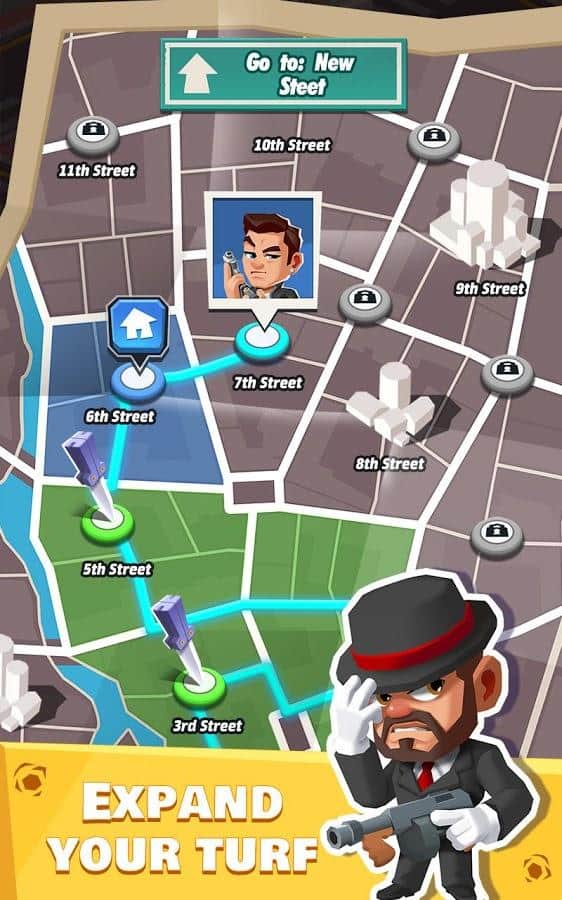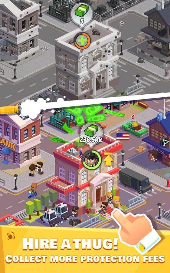 Idle Mafia es un juego de rompecabezas arcade económico con un clicker. ¿Siempre has querido probar el papel de un Padrino? Entonces has venido al lugar correcto. En el juego podrás, de una pequeña banda de criminales, crear gradualmente luchadores experimentados y todo un imperio criminal. Tienes total libertad de acción. Puedes robar tiendas y bancos, pedir dinero prestado para refugio, y pelear en las calles. El objetivo del juego es construir tu propio imperio y capturar el vecino. Para esto, te ayudará un leal Capo, un mercenario experimentado y asesino con un talento único. Expande tu territorio, gana una montaña de dinero y borra de la faz de la Tierra a aquellos que se atrevan a interferir.