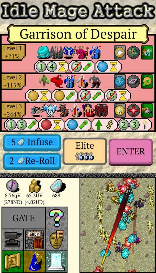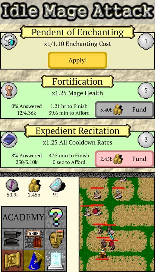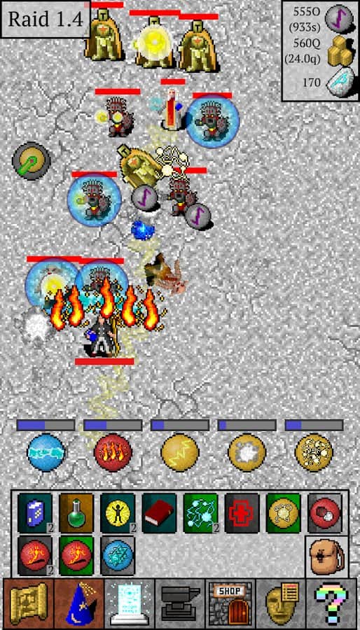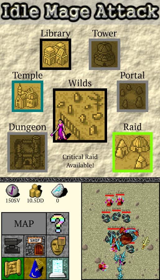 World Idle Mage Attack está lleno de verdaderos tesoros y los magos más fuertes tratando de coleccionarlos. Debes aprender los hechizos más poderosos, atravesando áreas peligrosas con hordas de enemigos que quieren matarte aquí y ahora, sin dejar que el viajero acceda a una fortuna fabulosa. Puede parecer que pasar a la siguiente etapa es imposible, pero es necesario concentrarse y aprender mejor las habilidades mágicas, mientras el enemigo fuerte comienza a retroceder. Y esta no es toda la fuerza del maestro. ¡Conviértete en el maestro de todas las mazmorras y obtiene un inmenso poder sobre el mundo!