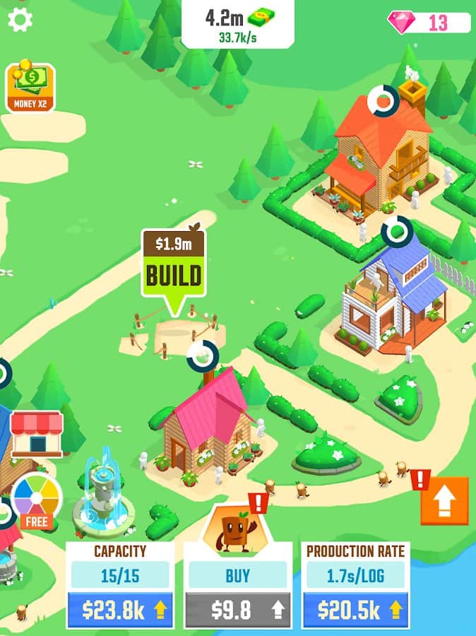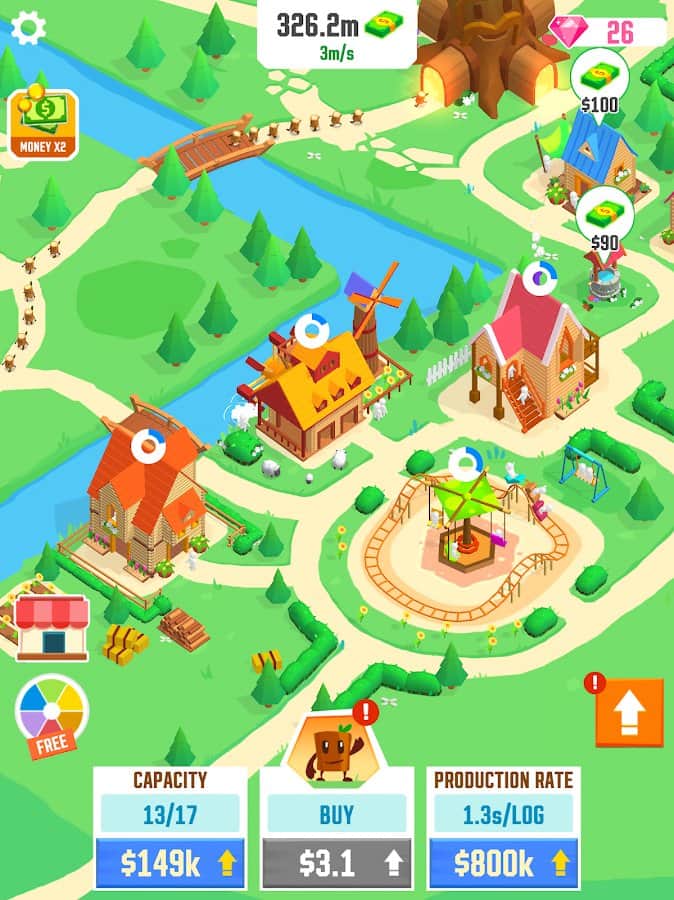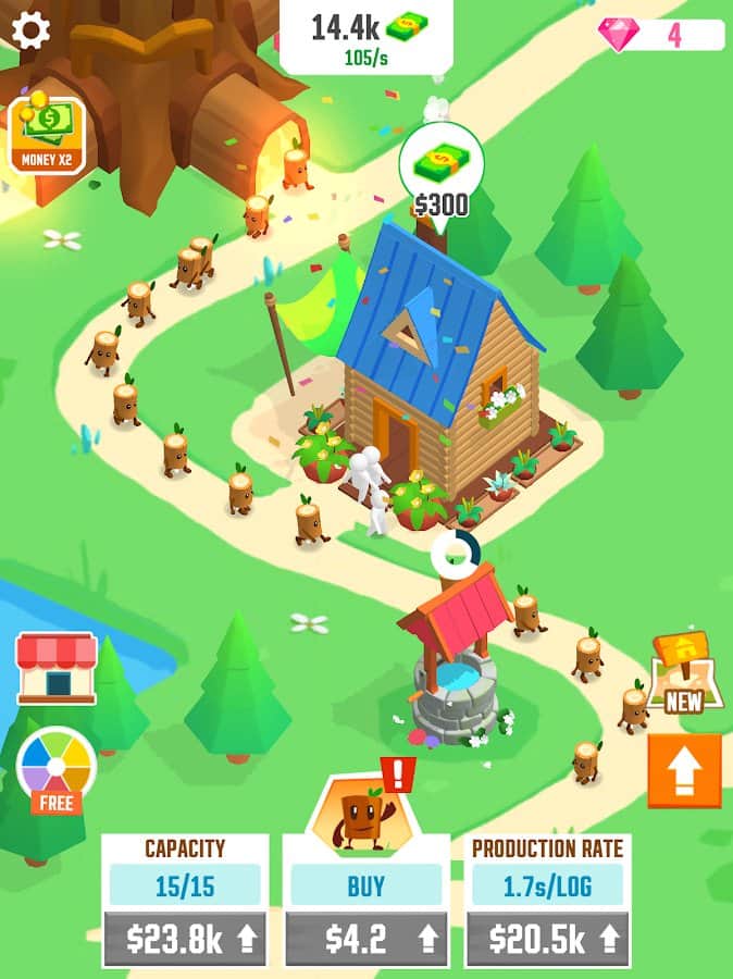 Construye una gran ciudad de madera, Idle Tree City, gracias a los bonitos troncos que provienen del Todopoderoso de un gran árbol. Comienza con un pequeño pozo a partir de una pequeña cantidad de troncos y camina hacia tantas casas que no se construyen tan rápido. Así que los troncos llegaron rápidamente a los objetivos: haz clic muchas veces en la pantalla. Abre nuevos edificios: casas, puentes, parques infantiles, granjas, pozos, y luego recoge las ganancias que generan en forma de dinero. Mejora sus capacidades y revive todo a tu alrededor, sin ver fronteras.