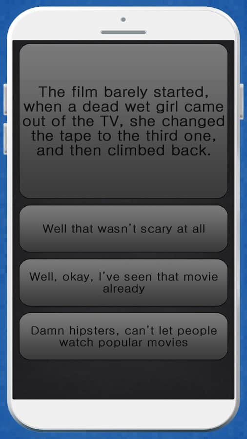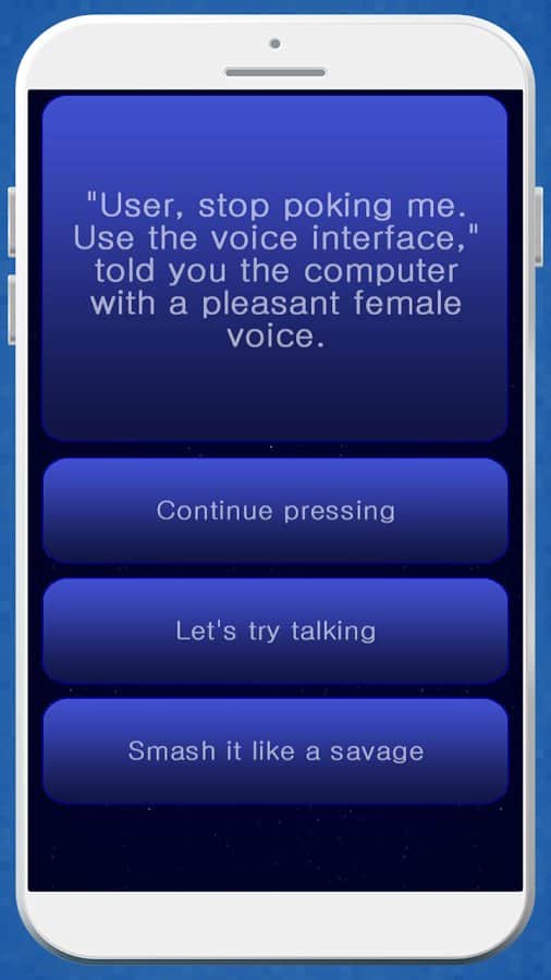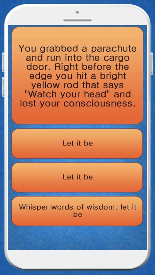 Misión Imposible - La crítica del autor de este juego no tiene límites, y aunque bromea al llamar a su juego "el más estúpido", está hecho de manera muy inteligente y muy divertida. ¿Cuál es el significado? Todo es simplemente una aventura de texto en la que necesitas tomar decisiones correctas o incorrectas y finalmente llegar a un final. Además, hay muchos finales y no siempre tienes el derecho de elección, pero eso también es parte del humor en este juego. Aquí encontrarás varios temas, y al seleccionar uno de ellos, ¡al menos intenta sobrevivir!