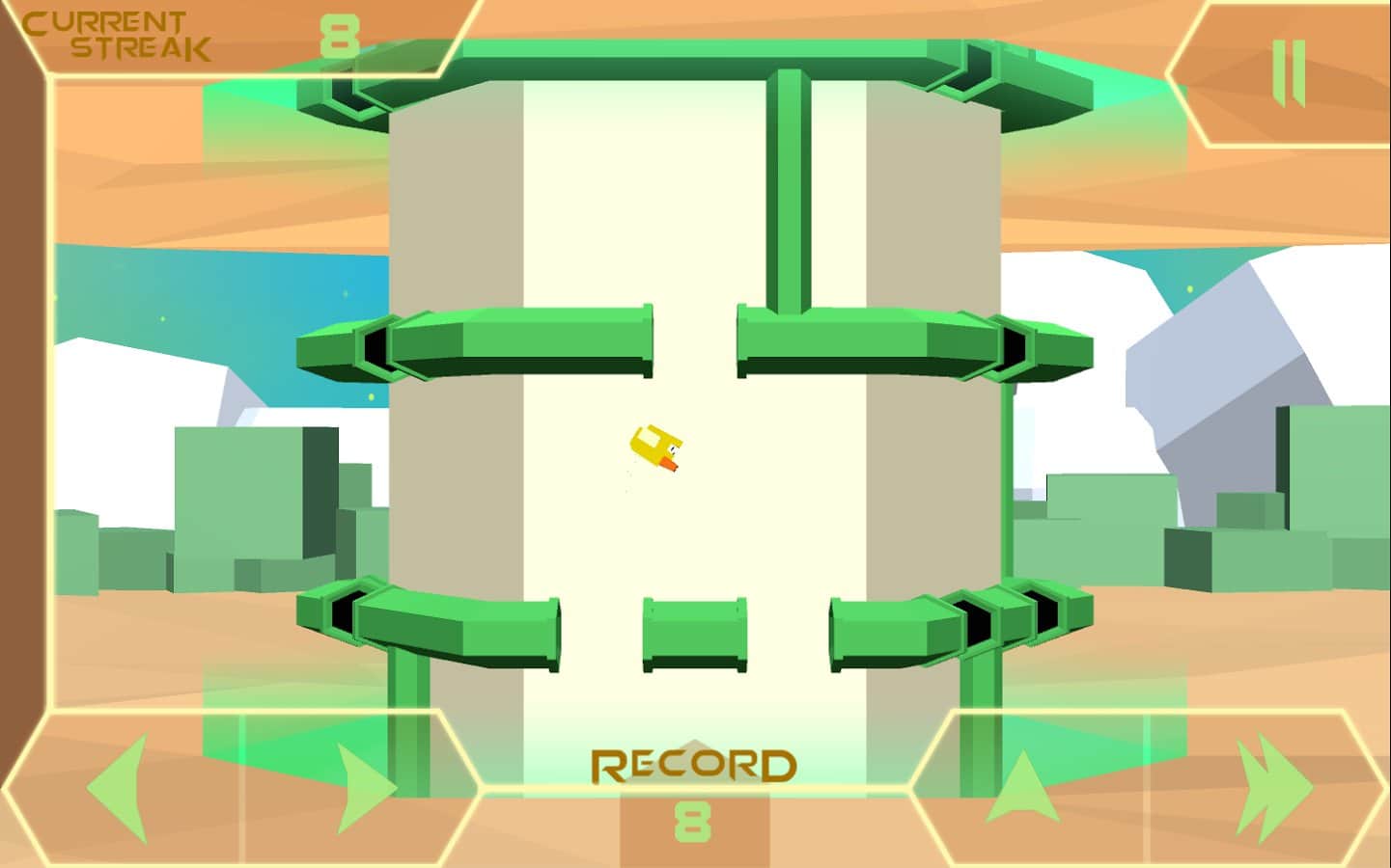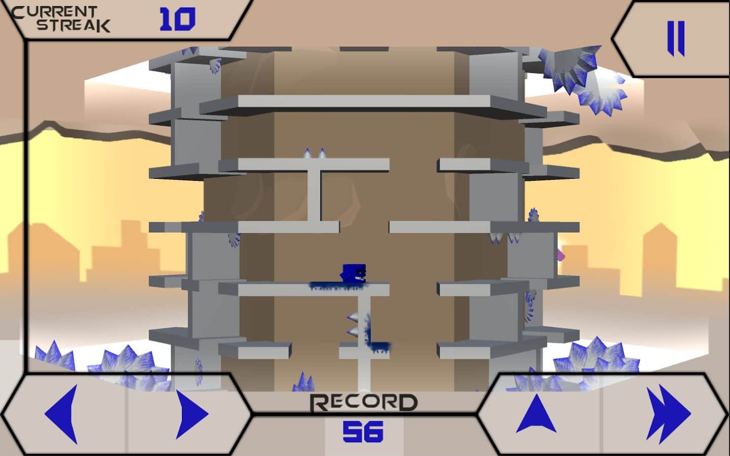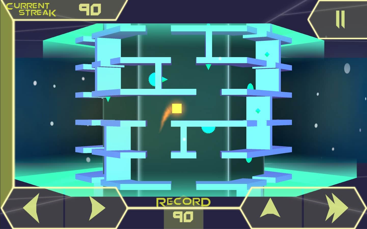 Hoy en día, el género de plataformas de arcade está más ampliamente representado en las plataformas móviles, sin embargo, la mayoría de estos proyectos utilizan una mecánica de juego lineal, en una proyección horizontal o vertical, y la aparición de otros representantes del género debería complacer a los aficionados de esta tendencia. Así que el estudio desarrollador Flynns Arcade, para ser honestos, nuestro pequeño amigo, decidió mirar la mecánica de juego popular desde un lado completamente diferente con el lanzamiento de un proyecto llamado Runner Impossible Dash. Runner Impossible Dash es eso, entre un corredor y un plataformas, ya que en la mayoría de los juegos similares tu tarea es superar lo más lejos posible, moviéndote en plataformas en diferentes niveles, pero todas las acciones se desarrollan en el marco de una torre hexagonal tridimensional, que consiste en pendientes y plataformas.
