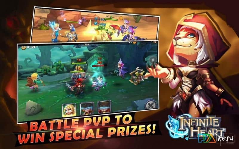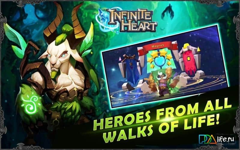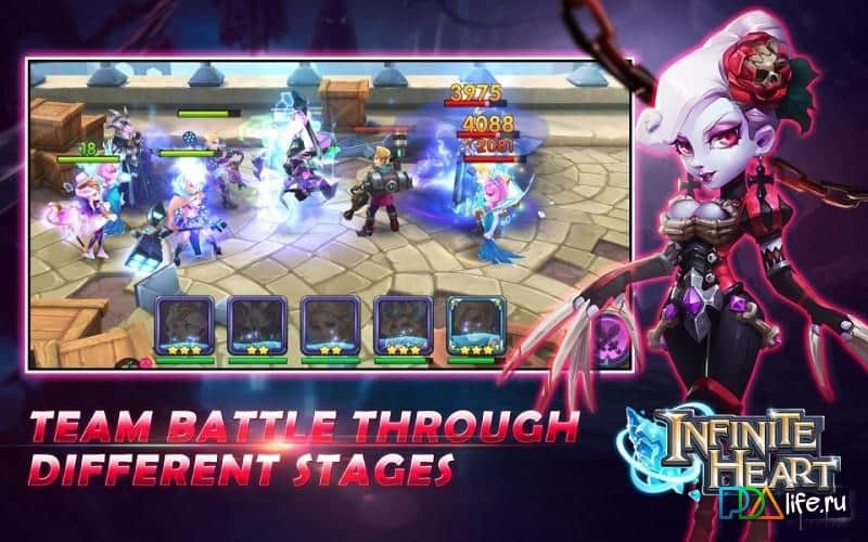 Corazón Infinito – reúne a tu equipo invencible de héroes y viaja por el enorme mundo, luchando contra enemigos. Forma un equipo compuesto por criaturas míticas, valientes héroes y guerreros, cada uno con habilidades y armas únicas. Únete a la lucha contra los enemigos y utiliza las habilidades de todos los personajes, desarrollando su estrategia. Protege tu mundo de la destrucción y derrota a los enemigos. Durante el juego, repón tu equipo con nuevos héroes y no olvides mejorar sus habilidades y adquirir nuevas armas y uniformes. Desafía a los jugadores más fuertes de todo el mundo y lucha contra ellos en la arena, el ganador recibiendo premios.