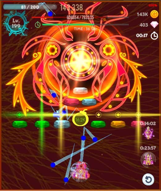 El Block Infinite VIP es un clásico juego de arcade de disparos con elementos de clicker para tu Android. Inmediatamente después de lanzarlo, el juego es adictivo con su jugabilidad simple y sin complicaciones y gráficos coloridos. En Infinite, el jugador de The Block VIP controla una nave espacial de combate y lucha contra jefes épicos que quieren esclavizar el mundo. El juego está dividido en varios niveles, cada 5 luchas contra el jefe. La dificultad aumenta a medida que avanzas en las misiones. Controla la nave con solo un dedo, enviándola a los blasters en la dirección correcta. Al destruir enemigos, ganas bonificaciones que puedes gastar para mejorar tu aeronave.