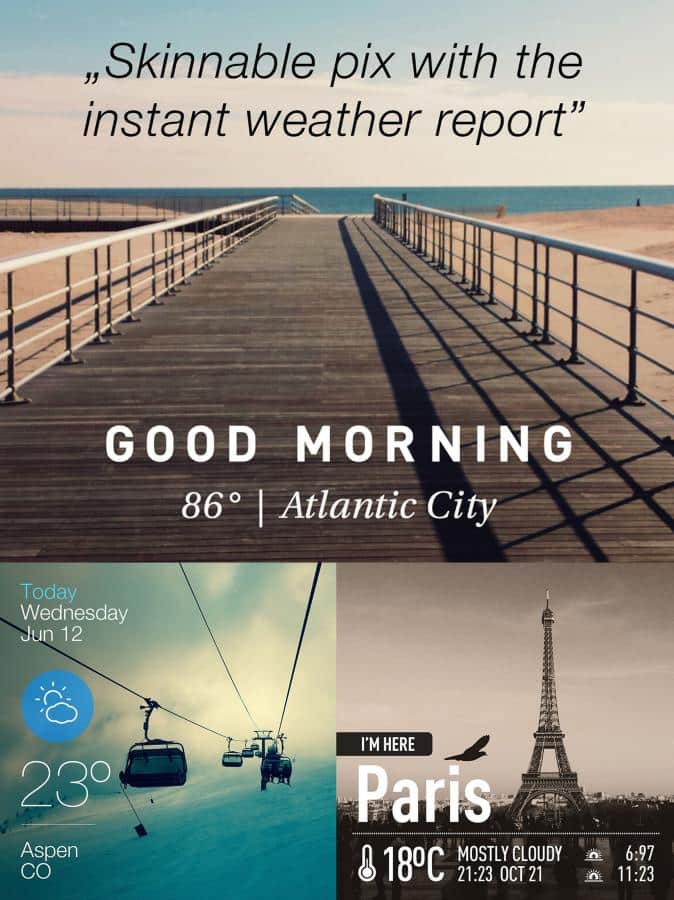 Se puede diversificar tus fotos en Instagram utilizando diversos filtros, stickers o añadiendo un toque especial con InstaWeather. La aplicación registra tu ubicación actual, añade el clima actual y lo superpone a tu foto. Hay una gran cantidad de plantillas en la aplicación: sin duda encontrarás una que te guste, además puedes elegir las unidades de medida que te son familiares y añadir tu propio comentario a la plantilla.