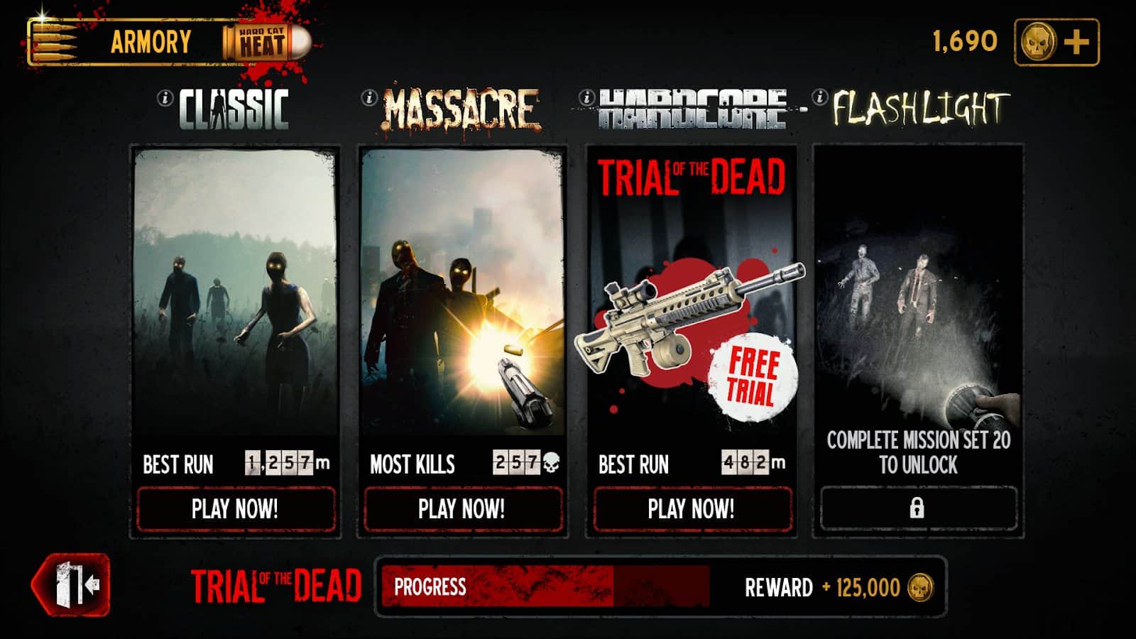 Into the Dead (Zombis en la niebla) - ¡cae en las garras mortales del mundo de los zombis! Tu principal ventaja es correr rápido, disparar y cuidar. Corre, esquivando los ataques de los zombis, ¡dispara a estas criaturas para que al menos sean menos! Completa misiones y juega mini-juegos. ¡Desbloquea todos los posibles caminos y objetos de defensa y ataque! Tu tarea se complicará por los efectos de diferentes tipos de niebla y bosques oscuros, etc. En el aspecto técnico, es un corredor típico en primera persona. Y aún así, al principio podrás elegir el tipo de bonificación para la próxima ubicación, como munición aumentada o un inicio no rápido con 0 km, y con 1.5 km.