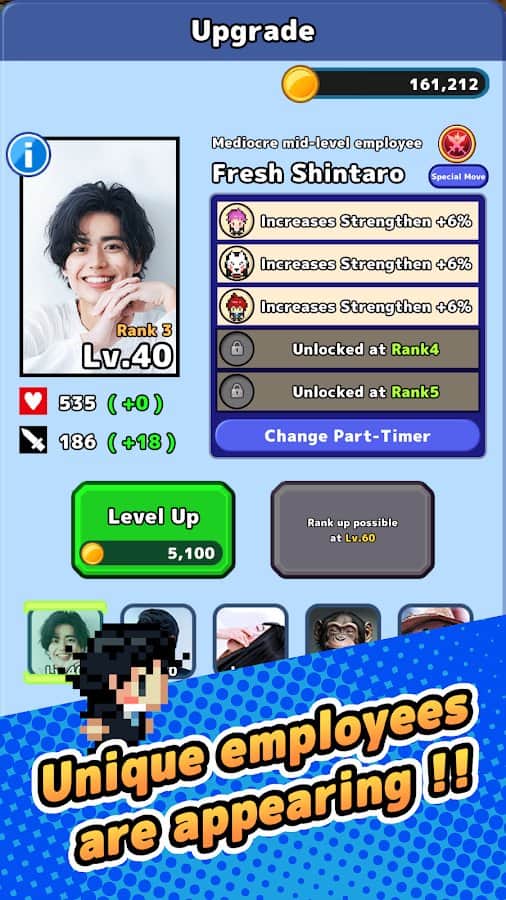 Bienvenido a la nueva sensación "Sugoroku x Auto Battle RPG." Este juego combina el sistema familiar de Sugoroku con elementos únicos de rol. Lanza los dados para obtener una ventaja en la batalla y conquista otro mundo con tus empleados temporales. El simple sistema de batalla automática permite que tus empleados embistan a los enemigos con todo su cuerpo. Los movimientos especiales también se activan automáticamente, dando a tus batallas un impulso y emoción extra. Este juego es perfecto para las personas que aman el arte en píxeles, los personajes surrealistas y que se esfuerzan por ser inigualables en otro mundo.