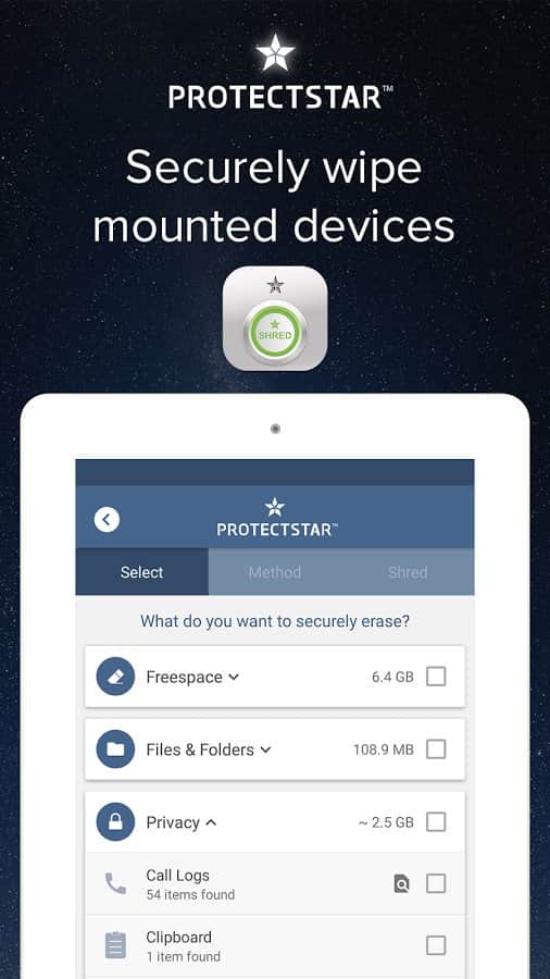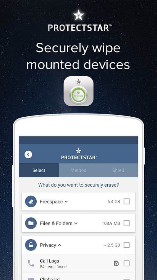 iShredder 3 – programa para Android capaz de llevar a cabo un barrido completo de tu dispositivo de cualquier dato personal (SMS, contactos, imágenes, música, etc.). Cuando este barrido no solo afecta la memoria del dispositivo, sino también la tarjeta SD. Otro detalle muy importante que vale la pena mencionar: ¡después de la operación, recuperar los datos ya no será posible! Así que, si decidiste vender/donar tu teléfono, ¡este programa es para ti!