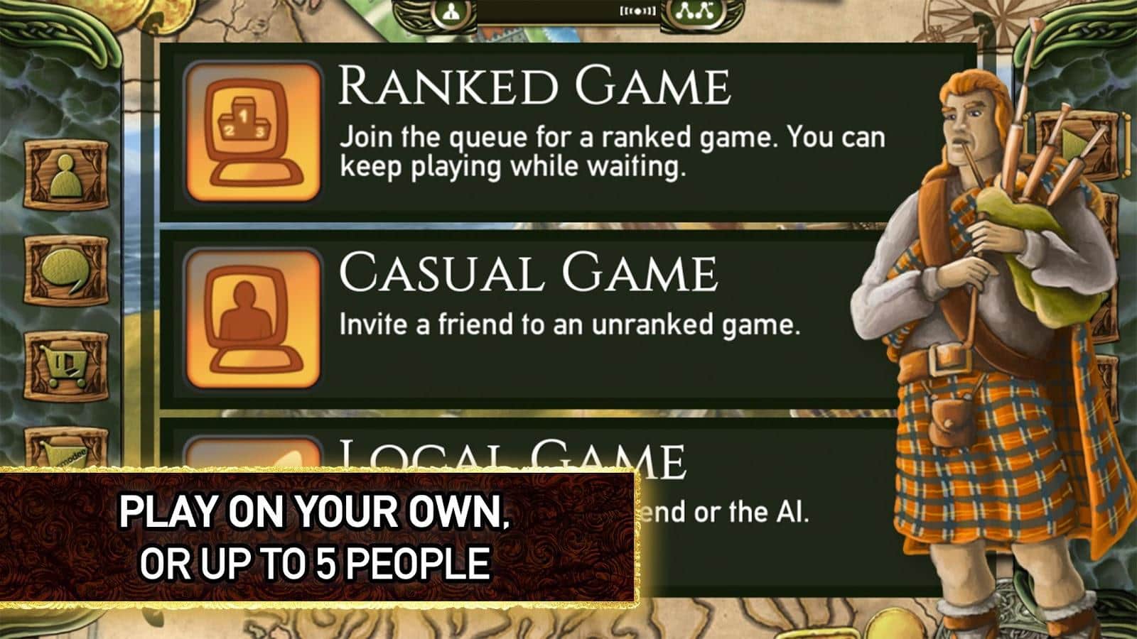 Isla de Skye: El Juego de Mesa Táctico – un juego en Android donde participarás en la batalla por la Isla de Skye. En este juego jugarás el papel de líder de uno de los clanes que luchan por una isla y mostrarás todas tus habilidades de un gobernante experimentado desarrollando sus tierras y liderando un comercio competente para convertirte en el rey de la Isla de Skye. Equipa la isla, añadiendo diversas formas como colinas, una costa escénica y cordilleras. Cría ganado, produce diferentes productos y construye granjas y barcos. Expande y desarrolla lo tuyo y apodérate de todo el poder en la isla.