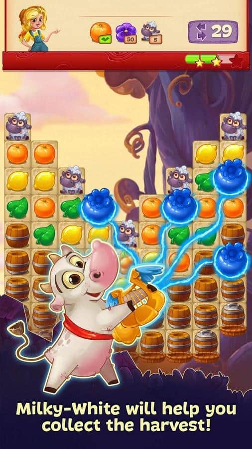 La Granja de Jacky es el juego del género tres en raya en Android donde te convertirás en un agricultor y llevarás a cabo varias misiones. En este juego, irás en un emocionante viaje donde ayudarás a Jackie a atrapar al gigante que vino a su granja y la robó. Escala detrás del gigante en la planta de frijol y combina tres o más objetos para obtener recompensas y bonificaciones. Juega este juego con amigos y disfruta de su tiempo libre mientras disfrutas de hermosos gráficos y emocionante jugabilidad. Descubre el mundo de los cuentos de hadas de nuevo y participa en el cultivo de verduras.