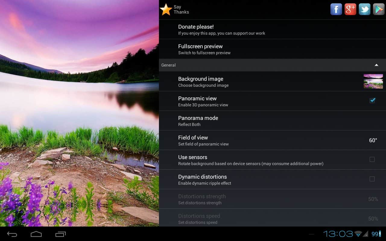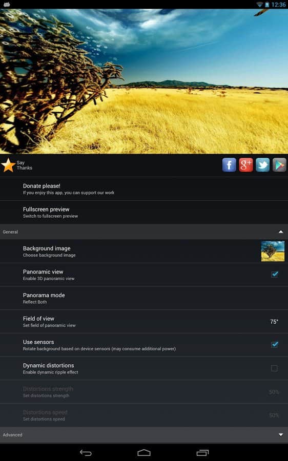Pantalla panorámica (Panoramic Screen) – una hermosa aplicación (fondos de pantalla en vivo) que crea panorámicas 3D a partir de fotos comunes, imágenes de la galería o fondos de pantalla normales. Usando una gran cantidad de configuraciones, puedes crear no solo panorámicas, sino también agregar efectos de distorsión dinámica a las fotos, presentaciones de diapositivas y mucho más! ¡Descárgalo!