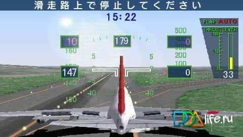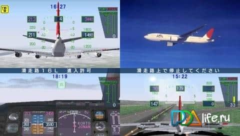 Jet De Go Pocket - simulador de aviones civiles para PSP. A tu disposición estarán gigantes como el Boeing 777-200, Boeing 767-300 y Boeing 757-400. El juego ofrece la posibilidad de jugar desde un tercer persona o directamente desde la cabina. En el juego puedes elegir diferentes aeropuertos japoneses, diferentes modos de juego e incluso condiciones meteorológicas.