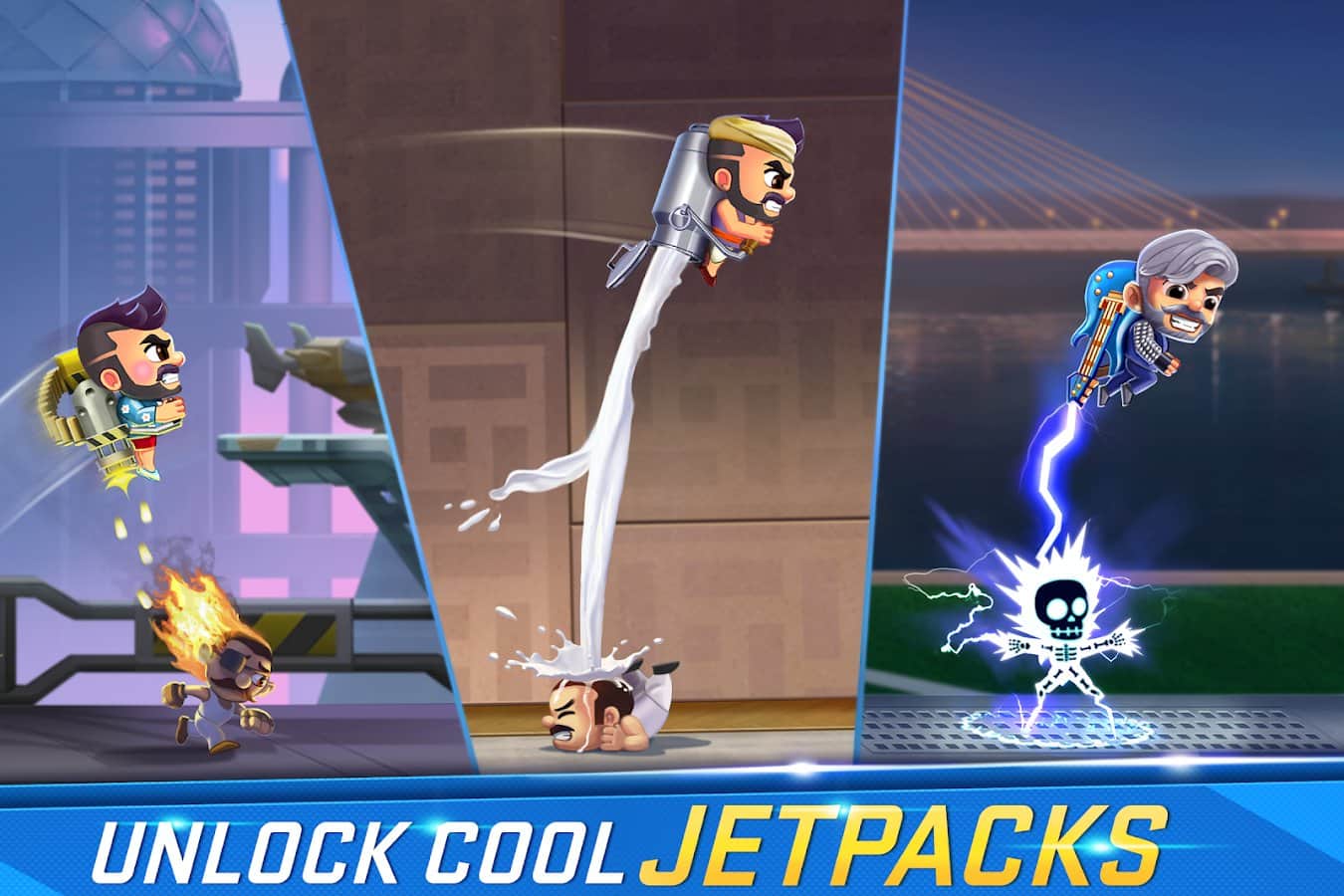 Jetpack Joyride India Exclusivo - Juego de Acción – un juego en Android donde gestionarás a un héroe valiente. En este juego tomas el control de tu personaje principal y lo guías a través de tres mundos diferentes luchando contra enemigos. Lucha contra poderosos jefes usando un jetpack, transformándote en un potente robot o montando una motocicleta. Desafía a jugadores de todo el mundo y participa en torneos diarios para obtener mejores recompensas.