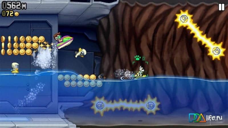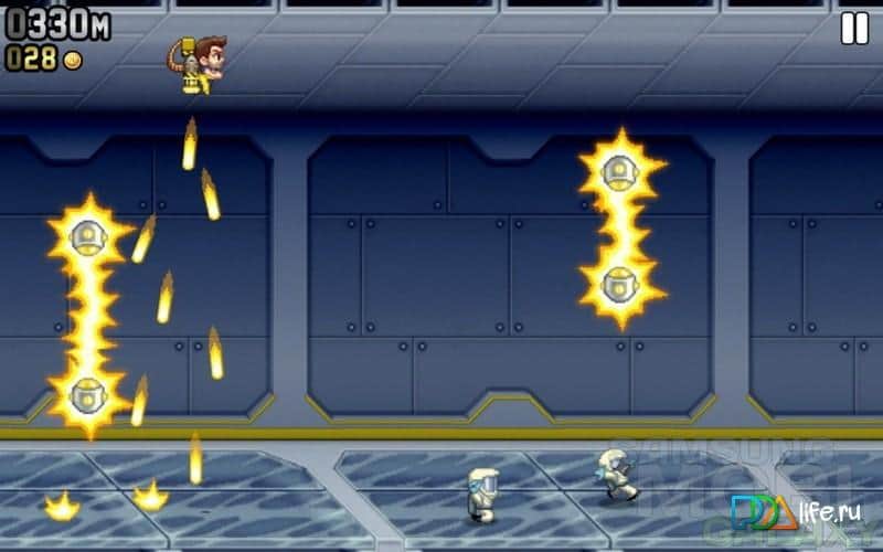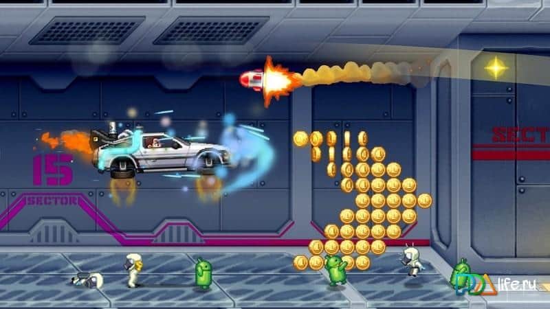 Jetpack Joyride – un gran juego lanzado en muchas plataformas, incluyendo PSP. Intentando escapar del laboratorio donde hay tantas trampas. Y ahora algunos spoilers) todavía no se puede escapar. Pero el objetivo del juego no es ese. Solo necesitas correr más tiempo y luego compartir tus logros con amigos. El juego tiene una gran cantidad de bonificaciones que te ayudarán a llegar lo más lejos posible. Los asistentes de acero, además de ayudar, te protegen de colisiones con diferentes obstáculos. Después de perder, puedes ganar varios premios en una máquina tragamonedas.