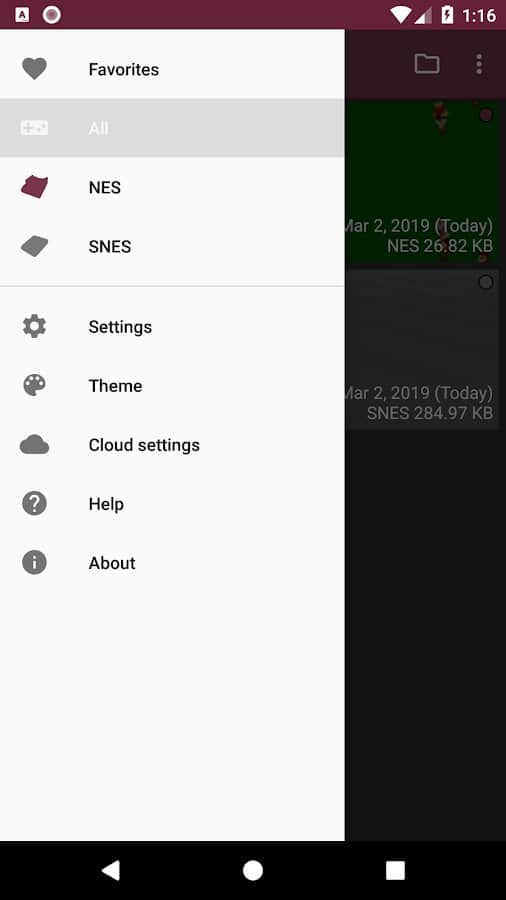 Emulador John GBAC para juegos de las consolas SNES y NES en Android. La aplicación tiene soporte para trucos y incluso aceleración y desaceleración de la emulación. Esto te permitirá hacer trampa un poco si no puedes pasar ningún nivel en el juego. Para facilitar el juego en el teléfono, tiene soporte para varios gamepads. Una sincronización con el servicio de Dropbox te permitirá guardar el juego y continuarlo en cualquier dispositivo compatible.