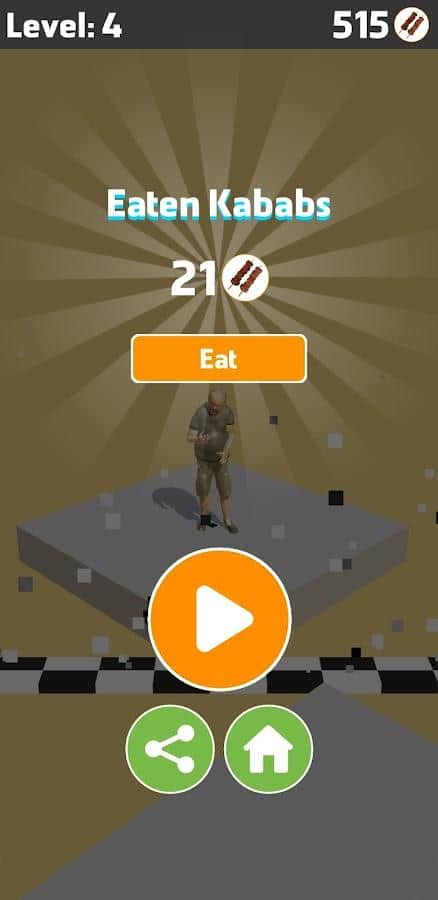 Comedor de Kebabs - Mama Vandam - Contribuye al desarrollo del personaje principal y avanza mucho para recibir valiosos premios: deliciosos trozos de kebab. Cada vez lo harás mejor, así que entrena cuidadosamente para saltar en el momento adecuado en la pantalla, y pronto superarás tus propios récords numerosas veces. Establece objetivos específicos y alcánzalos, recibe recompensas por completar tareas, y no olvides la oportunidad de comer directamente en las plataformas cuando te encuentres en ellas de alguna manera.