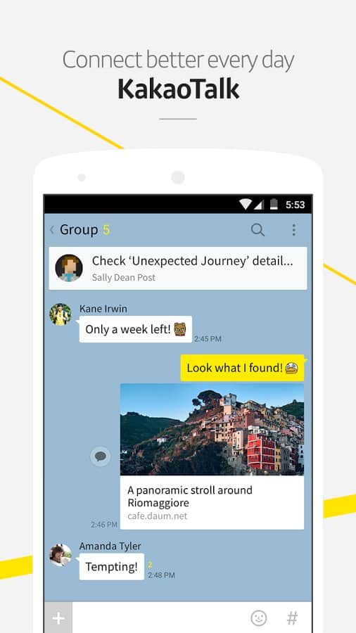 KakaoTalk: Llamadas y mensajes gratuitos - otro nuevo mensajero con el que podrás mantenerte en contacto con tus seres queridos usando solo Internet. ¡No tendrás que desperdiciar tráfico móvil si quieres hablar con amigos pero estás en el extranjero! Además, puedes hacer llamadas de video y ver a tu interlocutor.