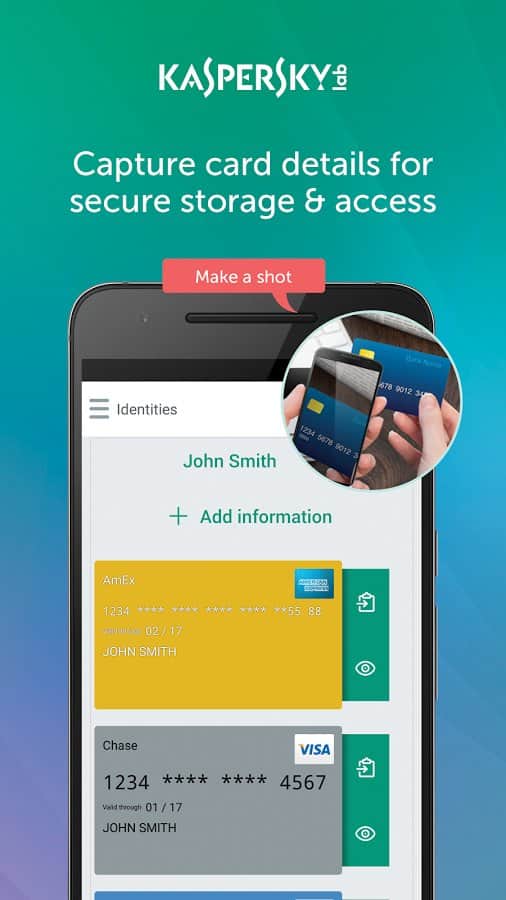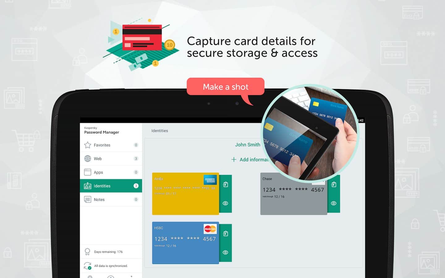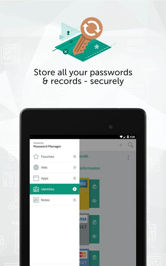 Kaspersky Password Manager es una gran aplicación para asegurar contraseñas, direcciones, datos de tarjetas bancarias y el resto de información importante. A menudo sucede que no es posible recordar todas las contraseñas o datos personales, y no se desea una tienda gratuita. Ahora puedes usar esta aplicación para cifrar todos tus datos y estar seguro de tu información. La aplicación también tiene la capacidad de sincronizarse con todos tus dispositivos, lo que te permite utilizar información confidencial en cualquier lugar.