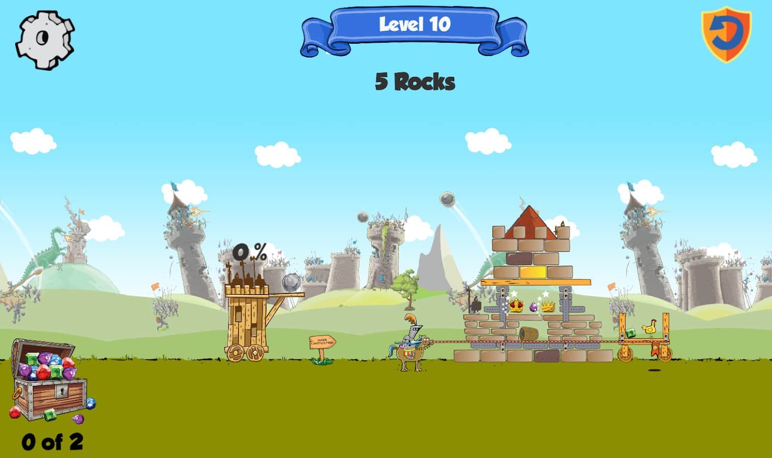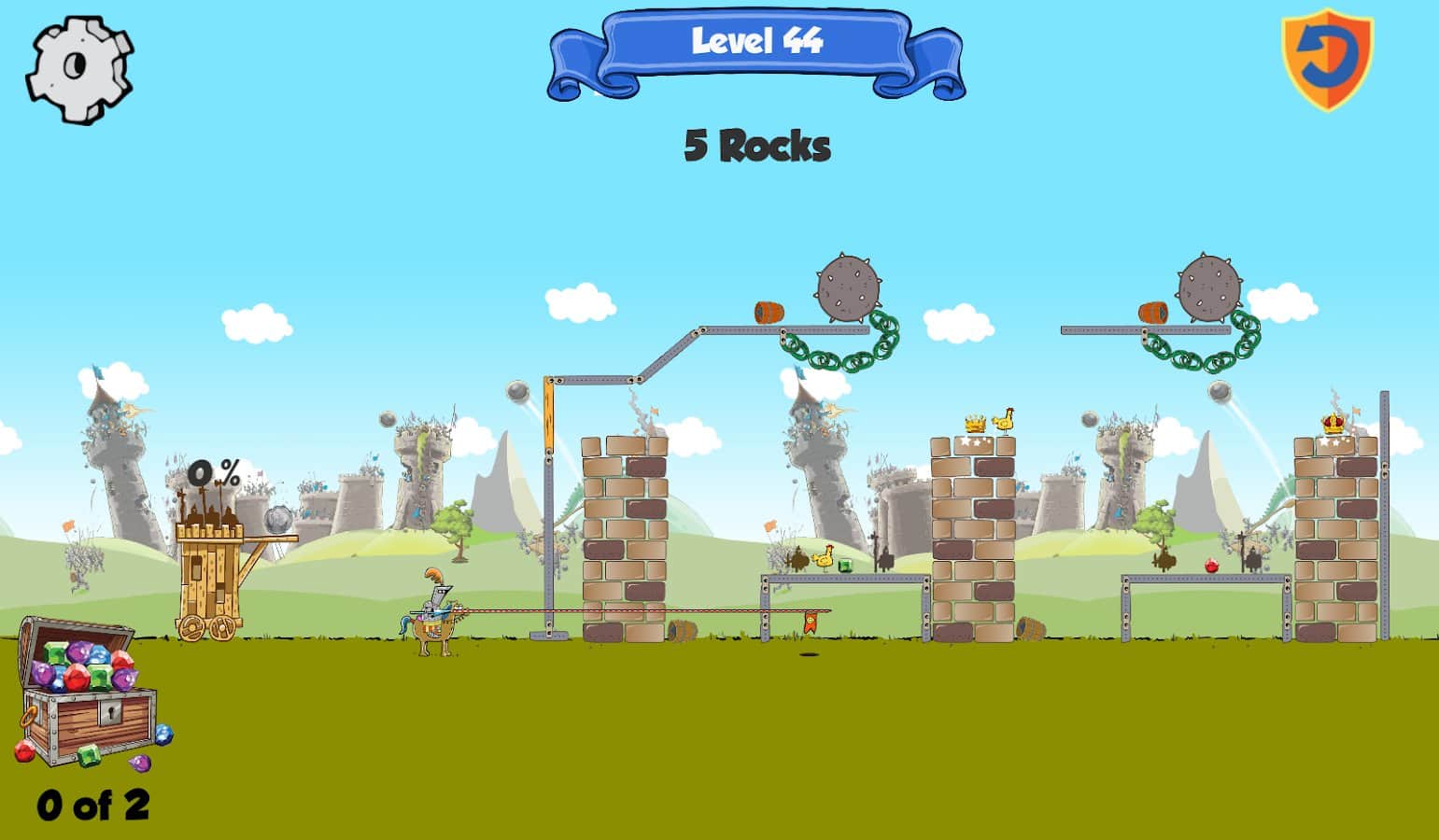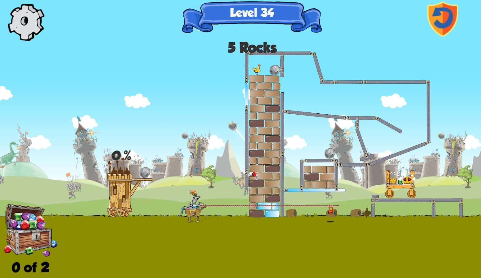 Kastles - Caos Medieval es un emocionante juego de rompecabezas para Android donde conducirás al rey y la reina de tu castillo. Eres el legítimo gobernante del Reino, pero tu lugar fue tomado por impostores y no tienes más opción que destruirlos. Corre hacia las piedras del castillo con una catapulta y destruye la fortaleza, tratando de alcanzar al rey. Tan pronto como destruyas una fortaleza, el rey y la reina huyen a otra, y es tan difícil para ti. Conecta tu imaginación e ingenio y avanza a través de los muchos niveles y destruye al rey. El juego se basa en las leyes de la física y es adecuado para cualquier edad.